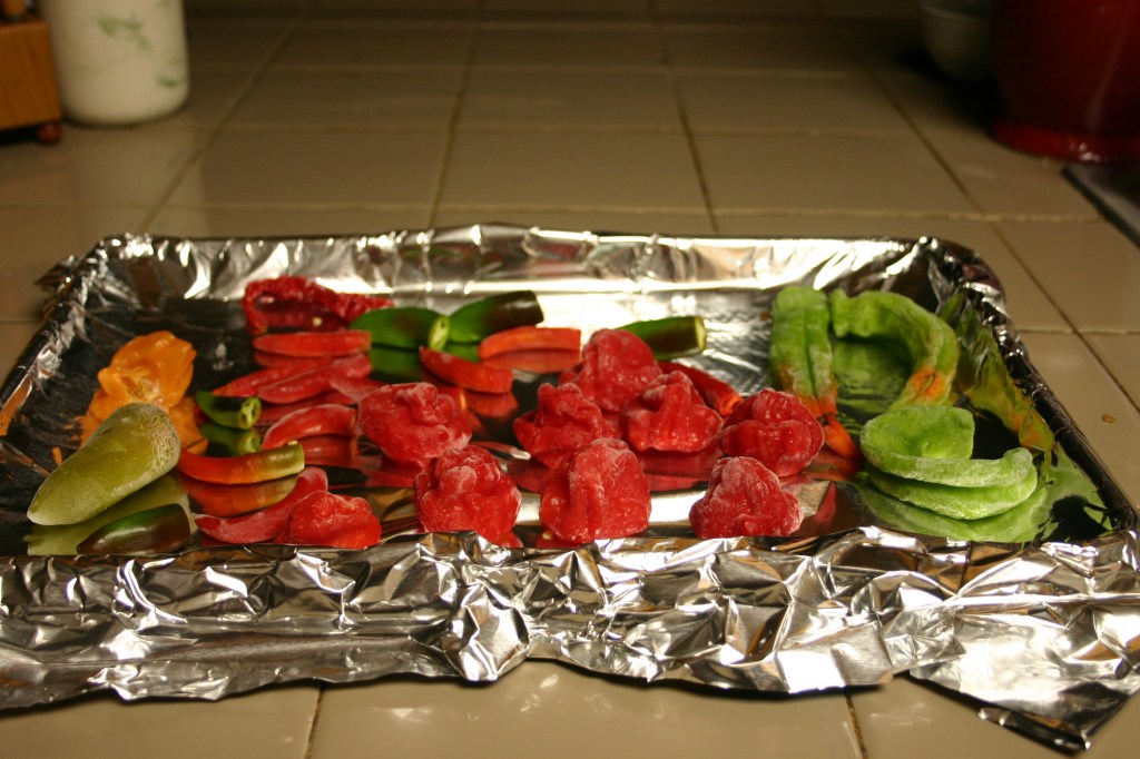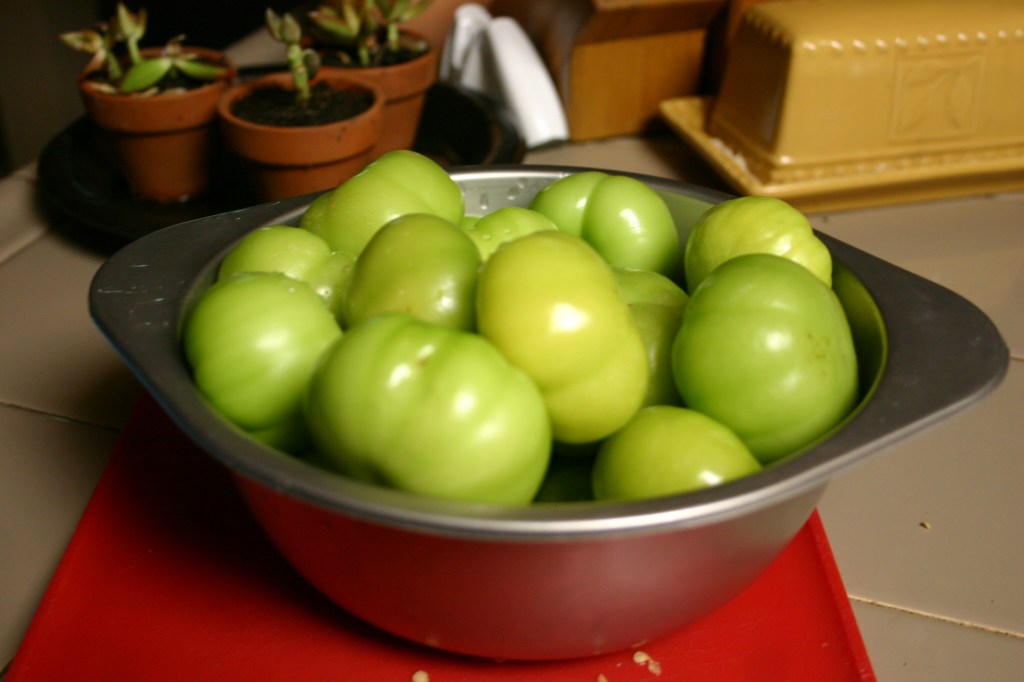 This year the garden went in late – it didn’t get planted until Memorial Day Weekend. This was in part because of all the rain and in part because we took an earlier than usual vacation to Yellowstone over Mother’s Day. We had decided that leaving the garden unattended so early in its cycle might not be a good idea, so planting was postponed. That decision, coupled with the strange weather – a late summer heat, then tropical storms that didn’t give us much in the way of rain, but lots of days without any sun – resulted in a less than productive garden. We didn’t have any Tomatillos to speak of until recently. The tomatoes were small, lacking in that true tomato flavor, and some of the pepper plants have yet to yeild any peppers to speak of. Our Peter Pepper Plant finally gave up one pepper, which we used as a garnish for our Spicy Taco Bean Dip at a recent family get-together.
