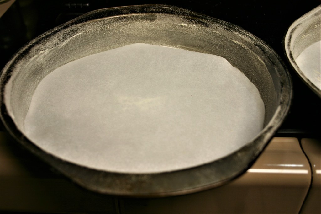 Heat oven to 325-degrees. Grease and flour 2 round cake pans. Place parchment paper in the bottom of each pan, set prepared pans aside.