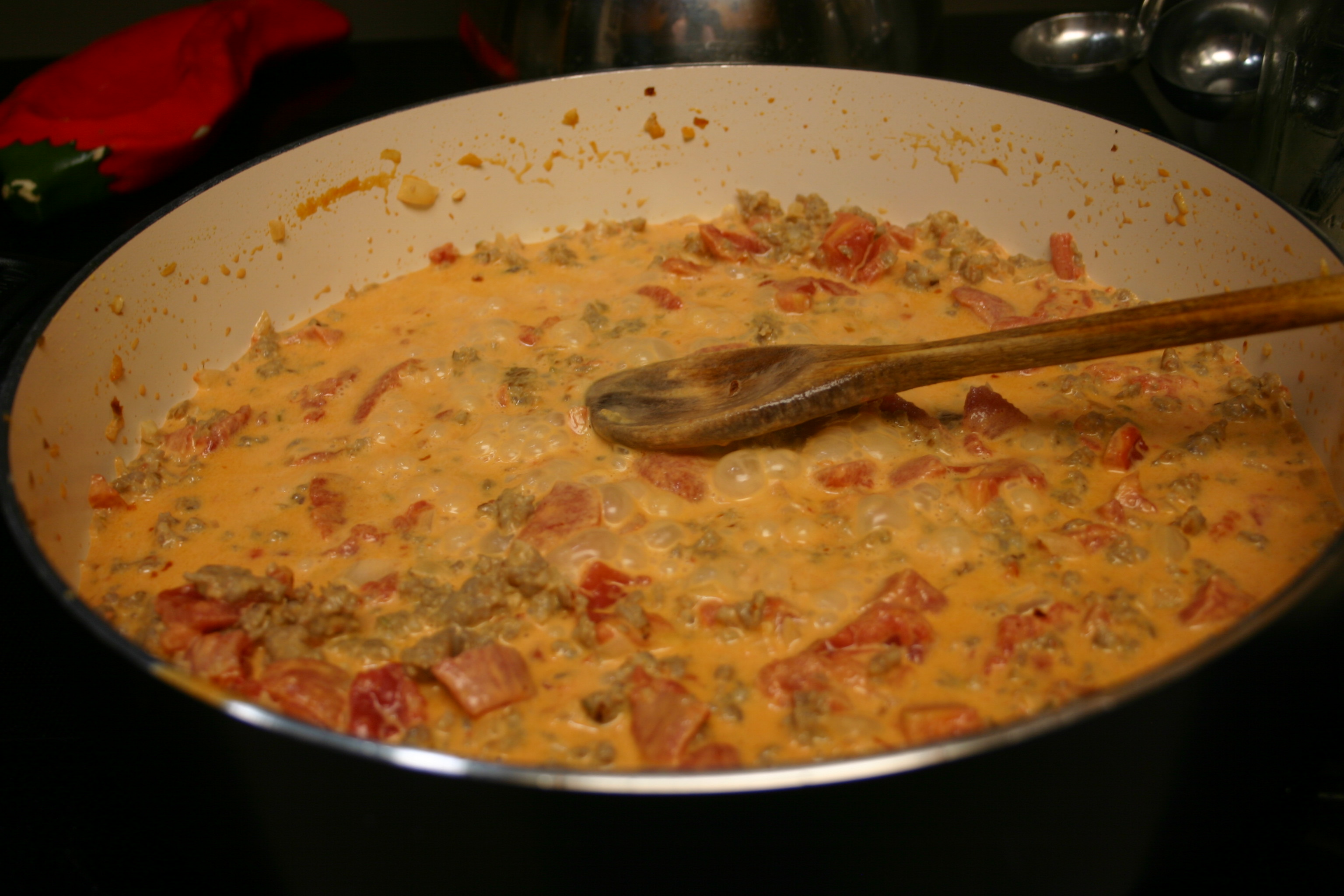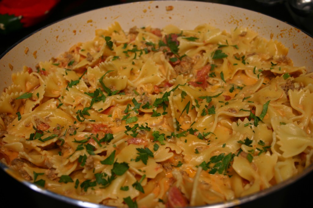 Bow Tie Pasta with Sausage, Tomatoes and Cream
