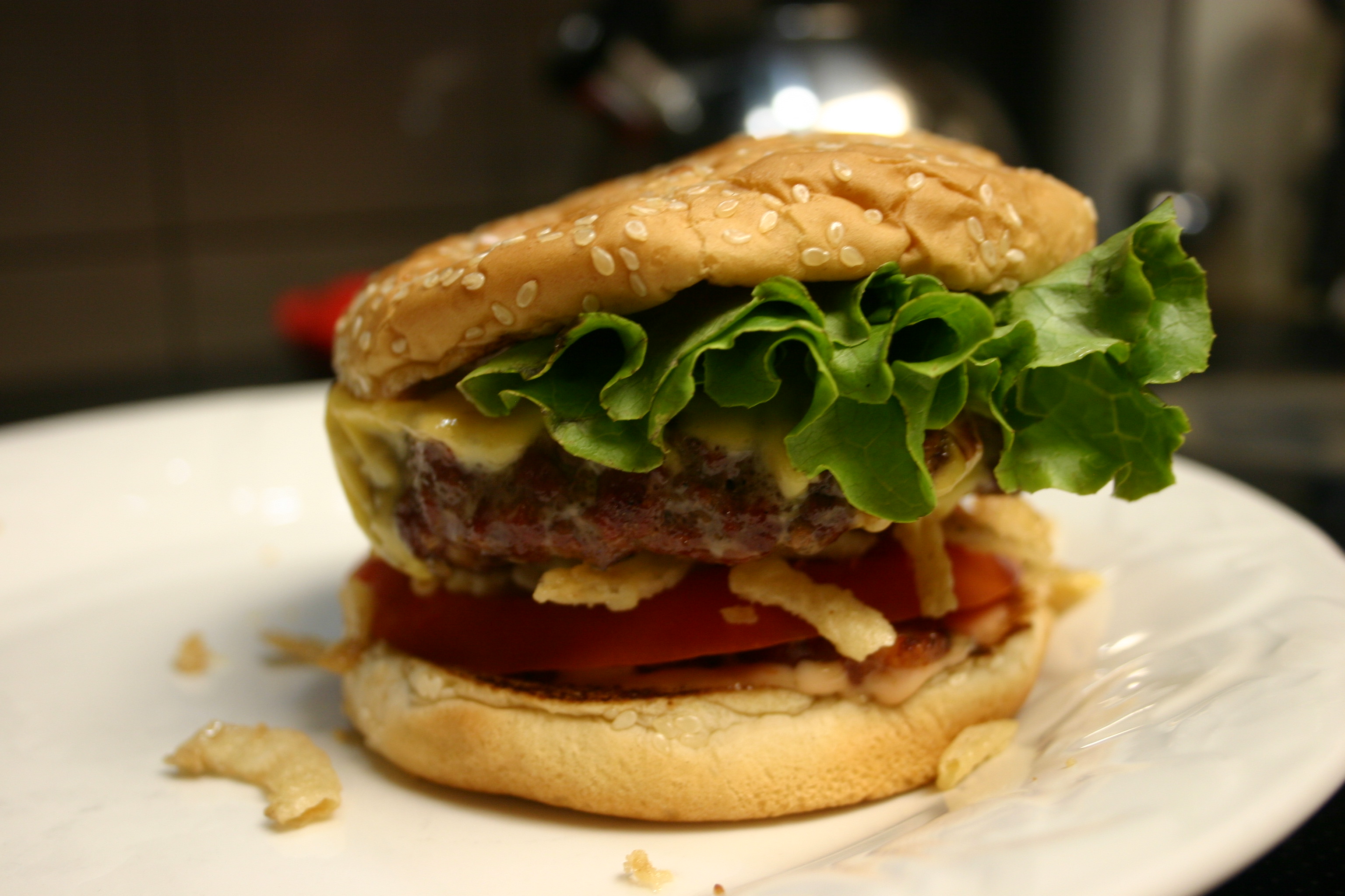 Place burger over the onions, then fishing layers with lettuce, close with the top bun. If desired, cut burgers in half just before serving. Great with French Fries.