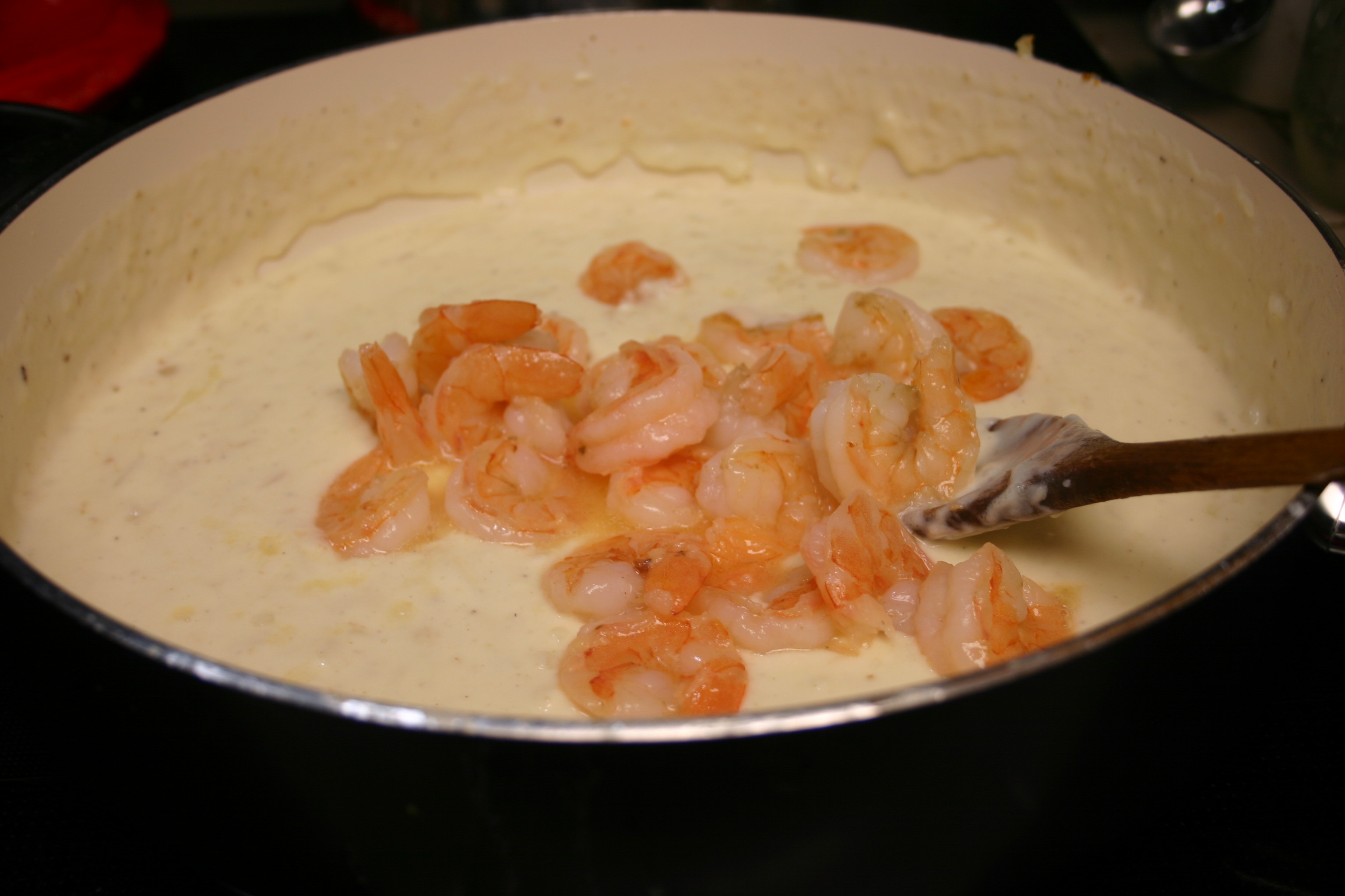Peel and devein shrimp. Remove tails if desired (easier to eat without tails). Keep shrimp chilled until ready to use.
