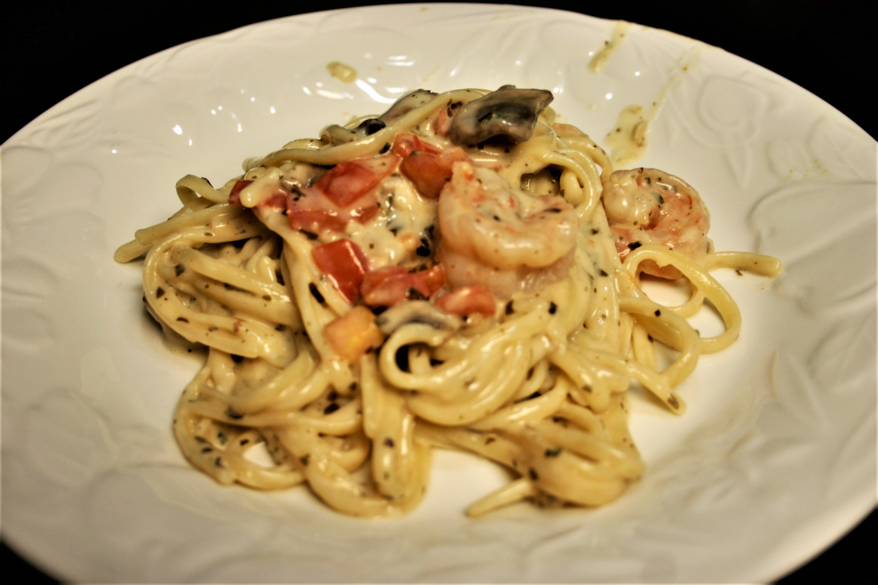 Linguine Shrimp in a Pesto Cheese Sauce