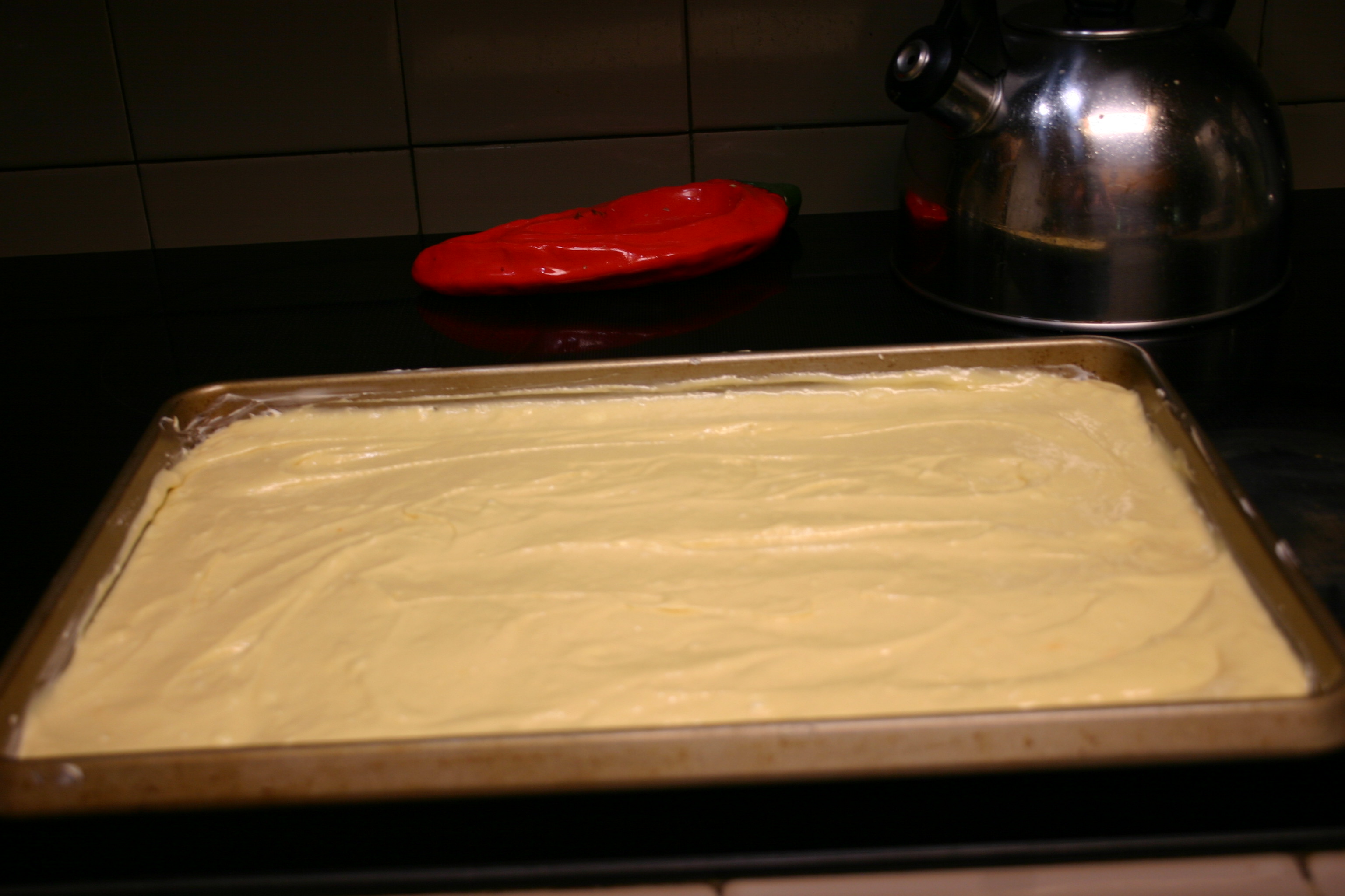Heat oven to 350-degrees. Grease a 15-inch by 10-inch jellyroll pan, set aside.