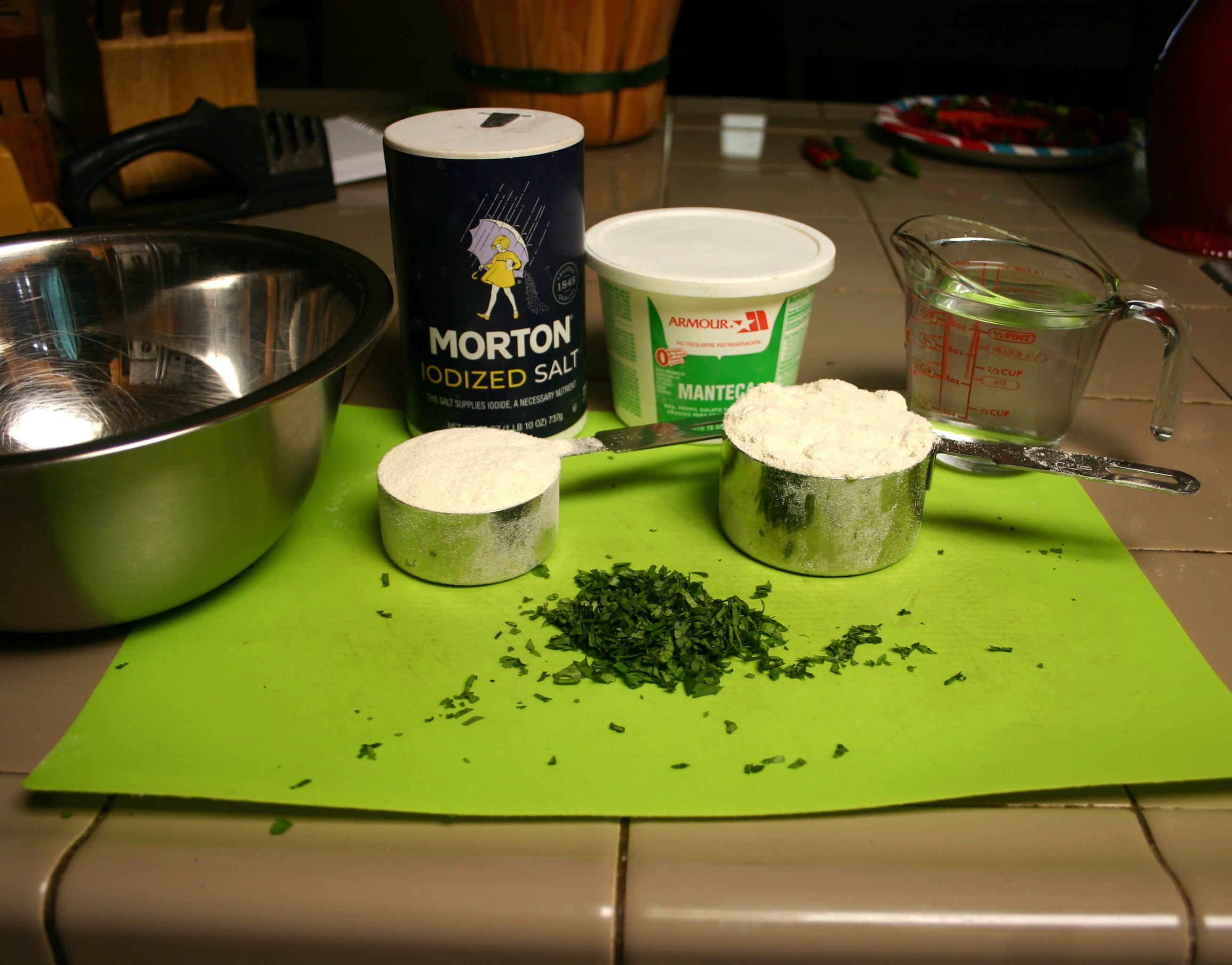 Add Masa, salt and lard to the bowl. Mix with hands. Add a little water at a time until the ingredients are combined. Kneed for 1 minute until a soft dough is formed.