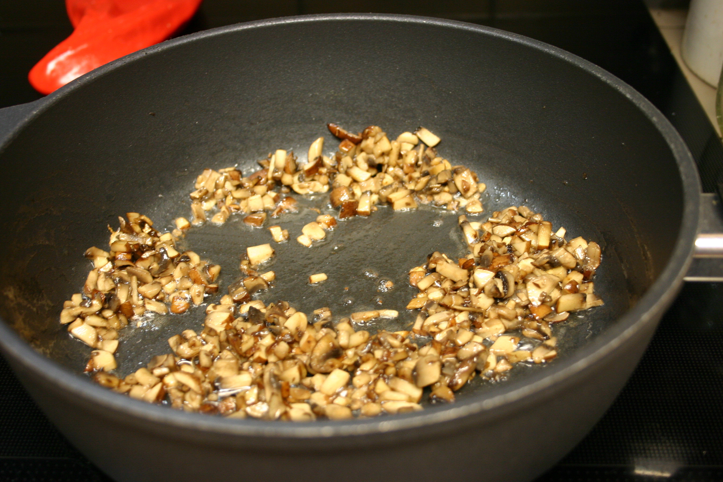Chop half of the mushrooms, set aside. Finely mince shallot, divide in half and set aside. In a saucepan over medium heat, melt a tablespoon of butter. Sauté chopped mushrooms until soft, about 6 minutes, stirring frequently. Remove from heat, set aside.