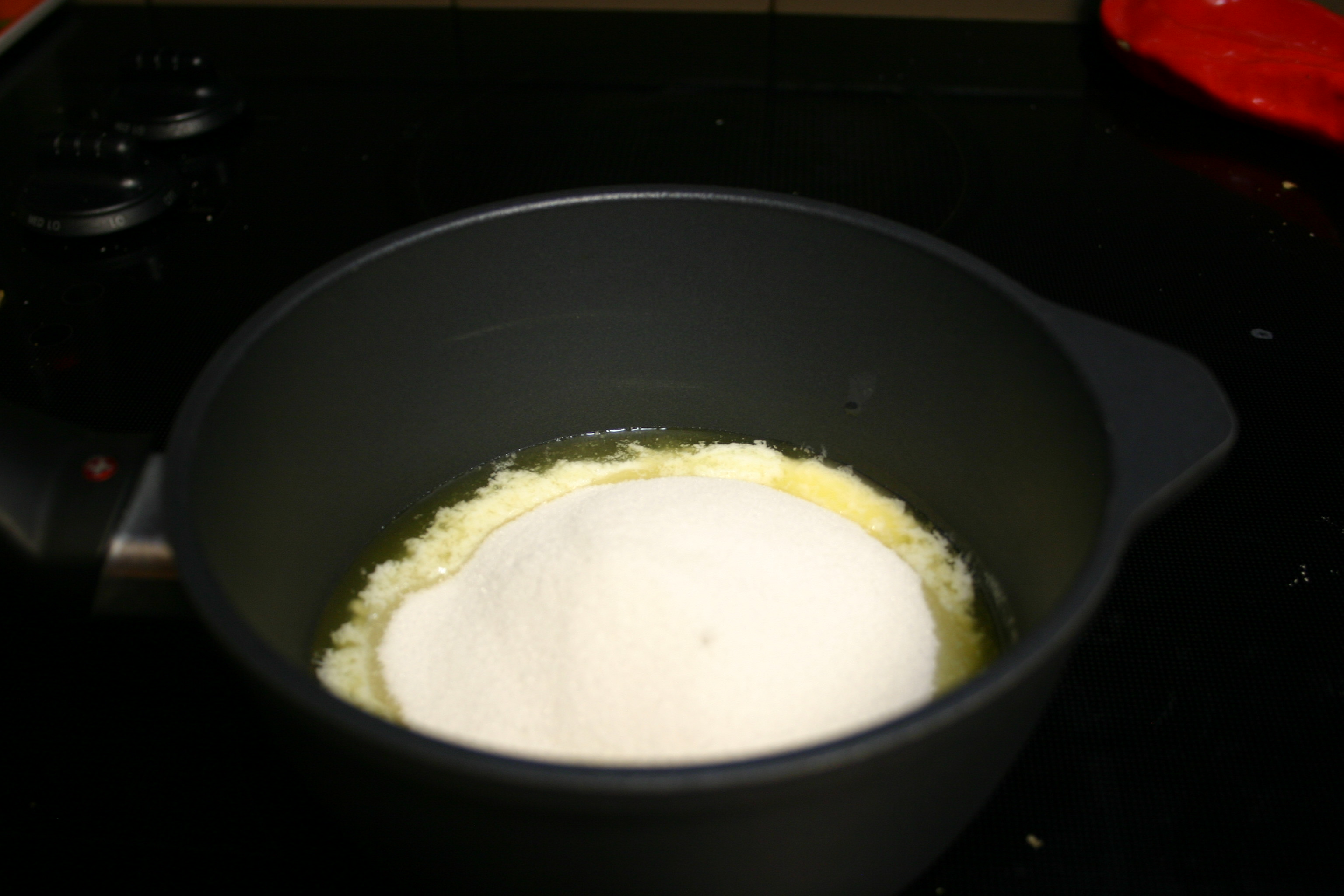 In a saucepan over medium heat, melt butter. Whisk in sugar, lower heat to medium-low, whisk constantly until the sugar has dissolved. Remove from heat, whisk in the Whiskey Bourbon and cream.