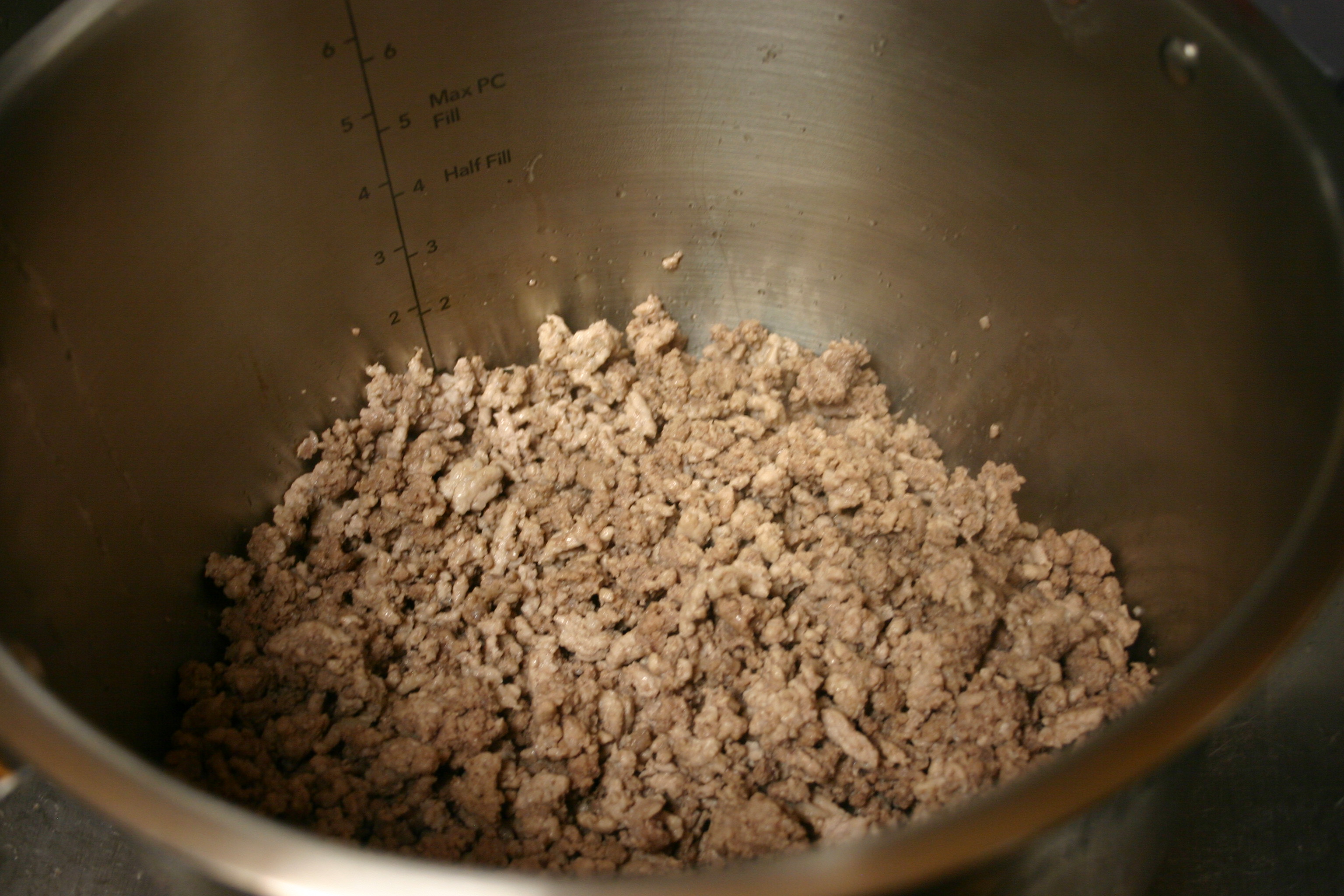 In a large cast iron skillet, cook ground beef and ground sausage together over medium heat until no longer pink, about 15 minutes. Drain well. Place meat into the bowl of a large slow-cooker.