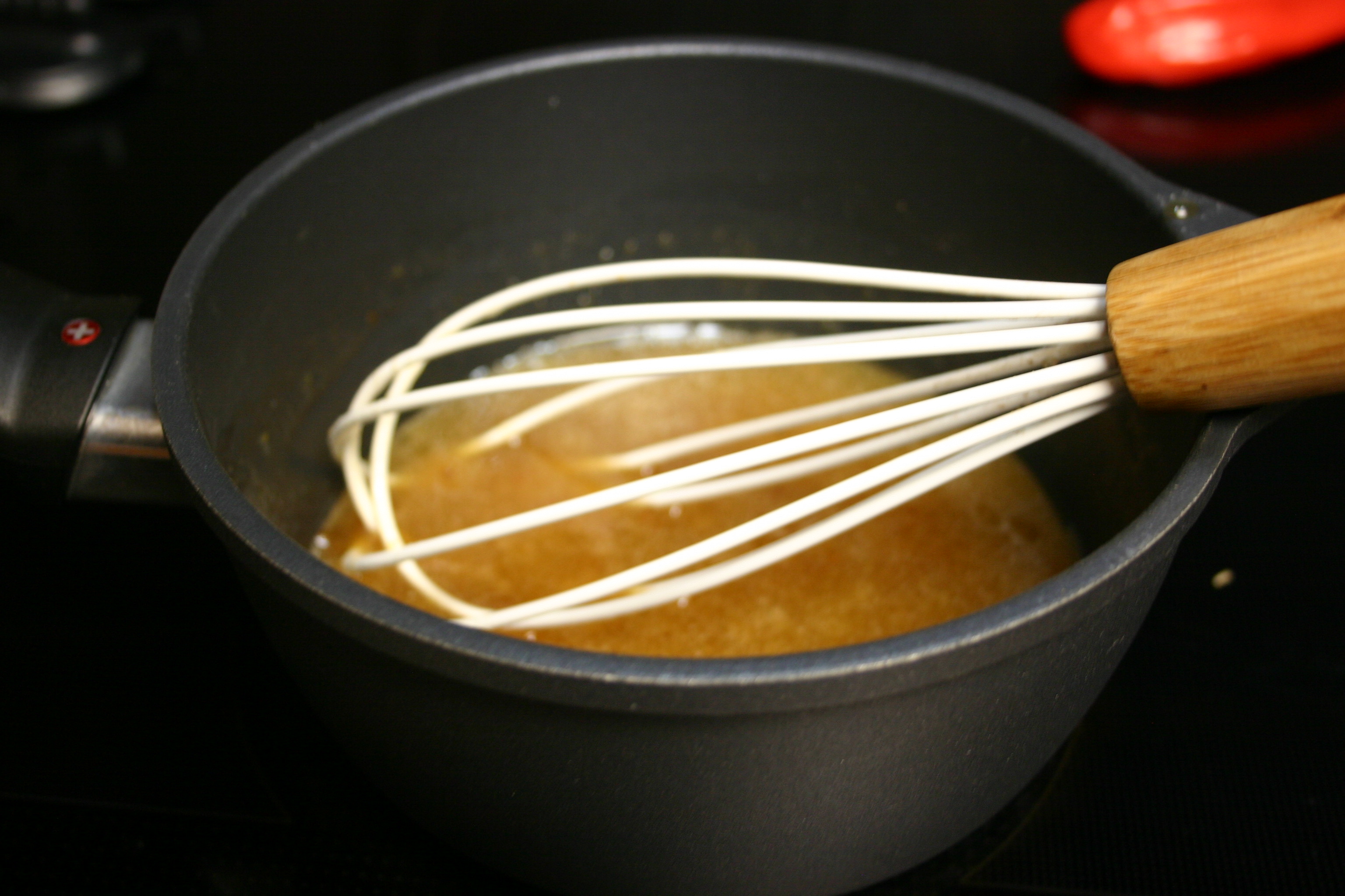 In a saucepan over medium heat, melt butter. Whisk in mustard, honey and apricot jam as the butter melts. Bring to a bubble. Remove fro heat, add Grand Marnier. Whisk to incorporate. Set glaze aside until ready to use.