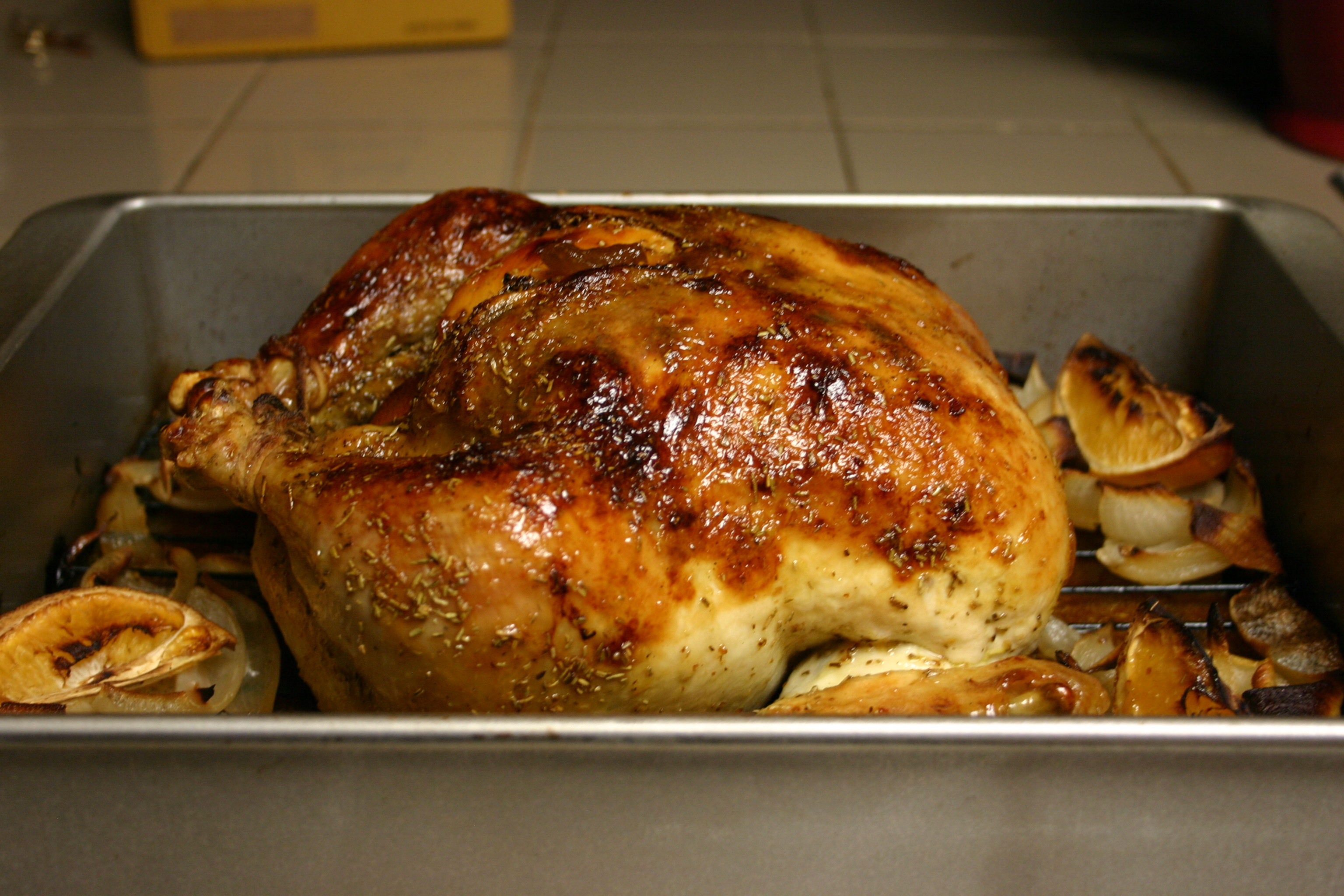 Place chicken in the hot oven to roast for 30 minutes. Without opening the oven door, reduce heat to 350-degrees. Continue to roast chicken for another hour undisturbed.
