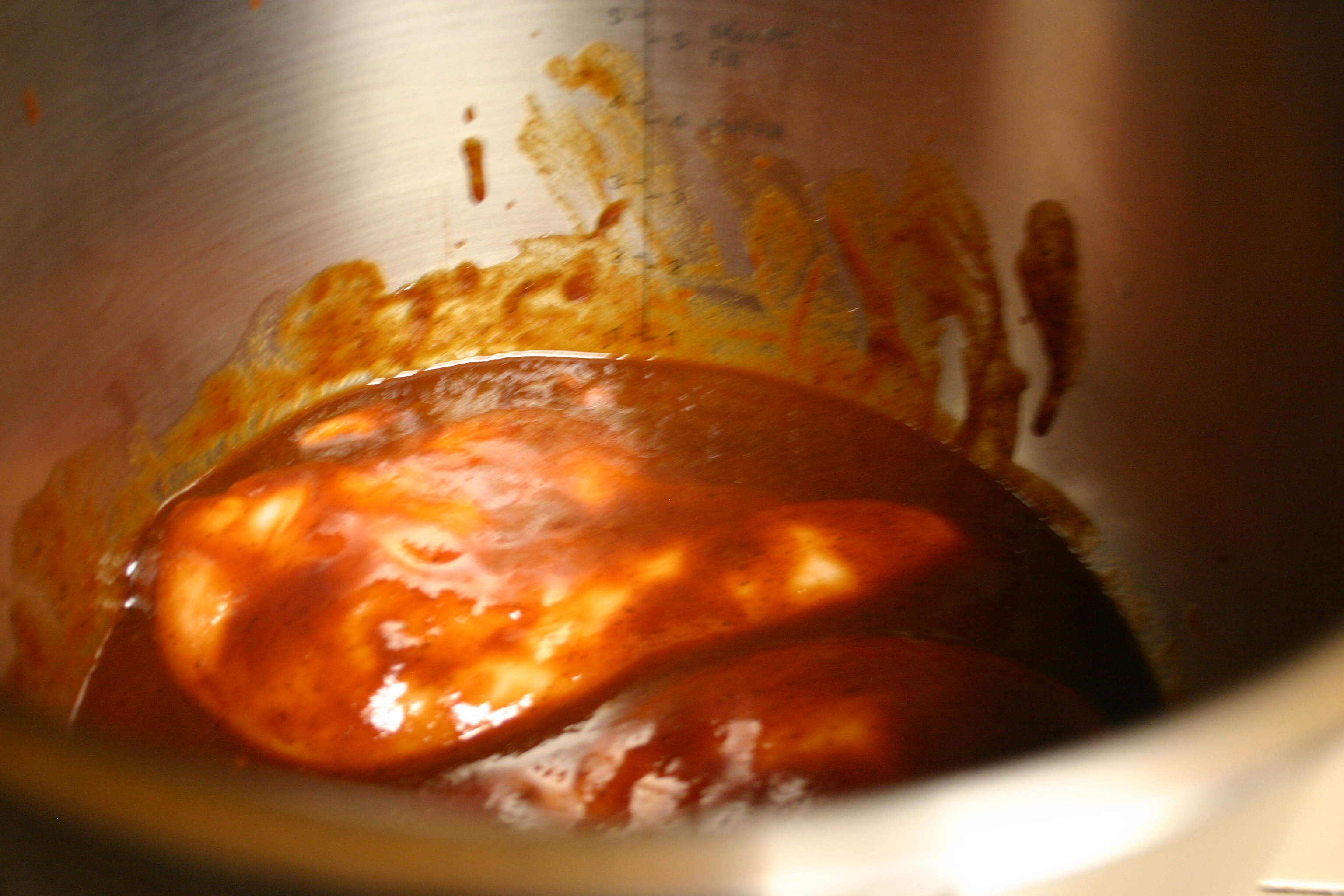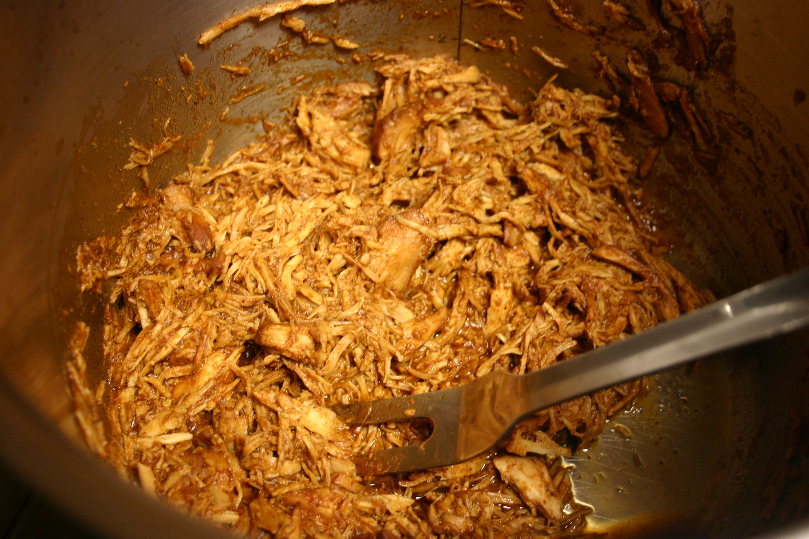 Cover and cook on HIGH for 3 hours. Using the two-fork method like claws, shred the chicken, mixing into the barbecue sauce as the meat falls apart. Keep warm.