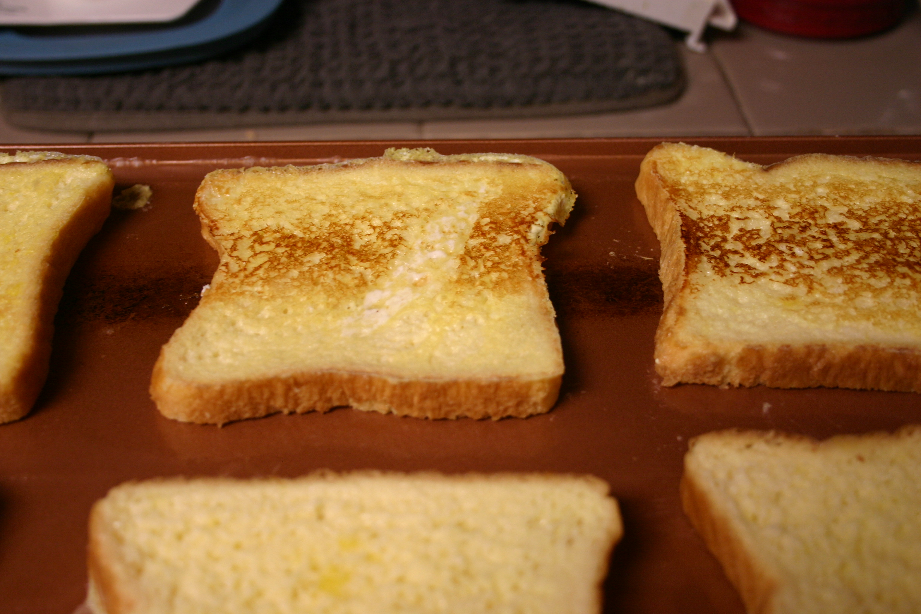 Dip bread slices into the custard mixture. Place on the warmed griddle, fry for a few minutes, just until golden brown and lightly toasted. Flip bread over.