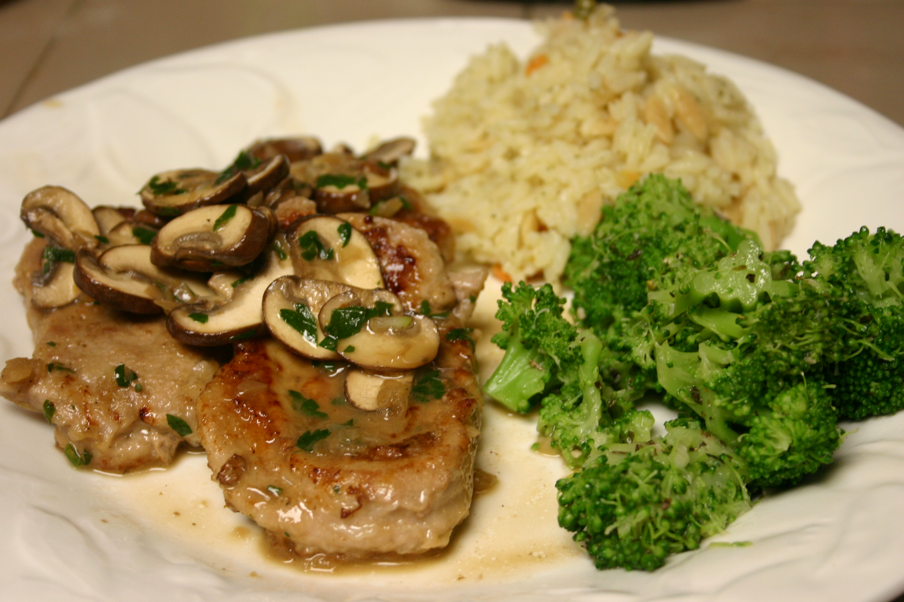 Remove pork cutlets from the oven. Spoon mushroom mixture over the cutlets, then pour pan sauce over the mushrooms. Serve and enjoy.