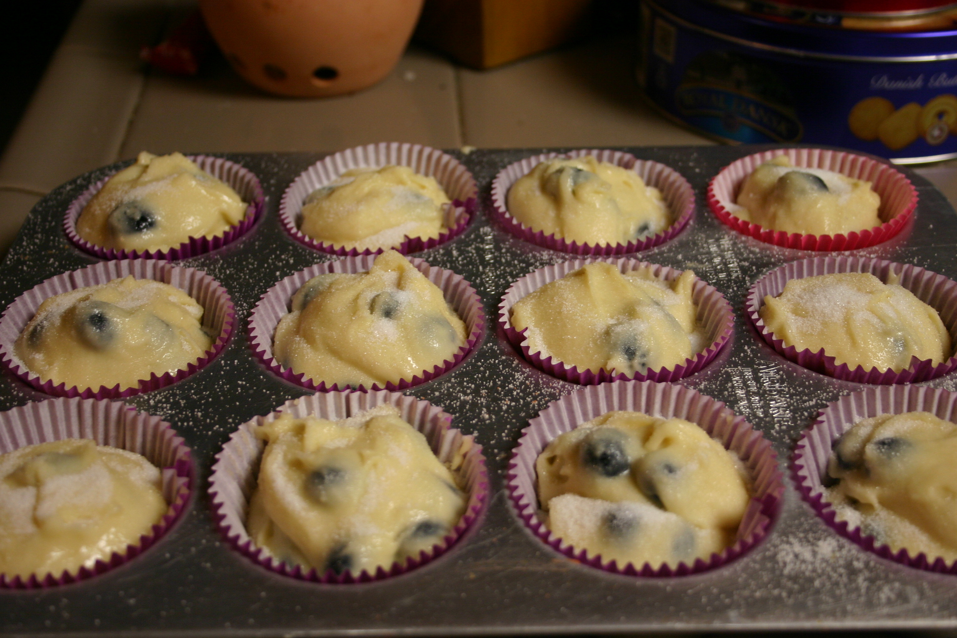 With a cupcake scoop, fill each prepared paper-lined muffin cup three-quarters full of batter. Sprinkle the tops of each muffin with remaining quarter cup of sugar. For a slightly sweeter muffin top, add more sugar as desired.