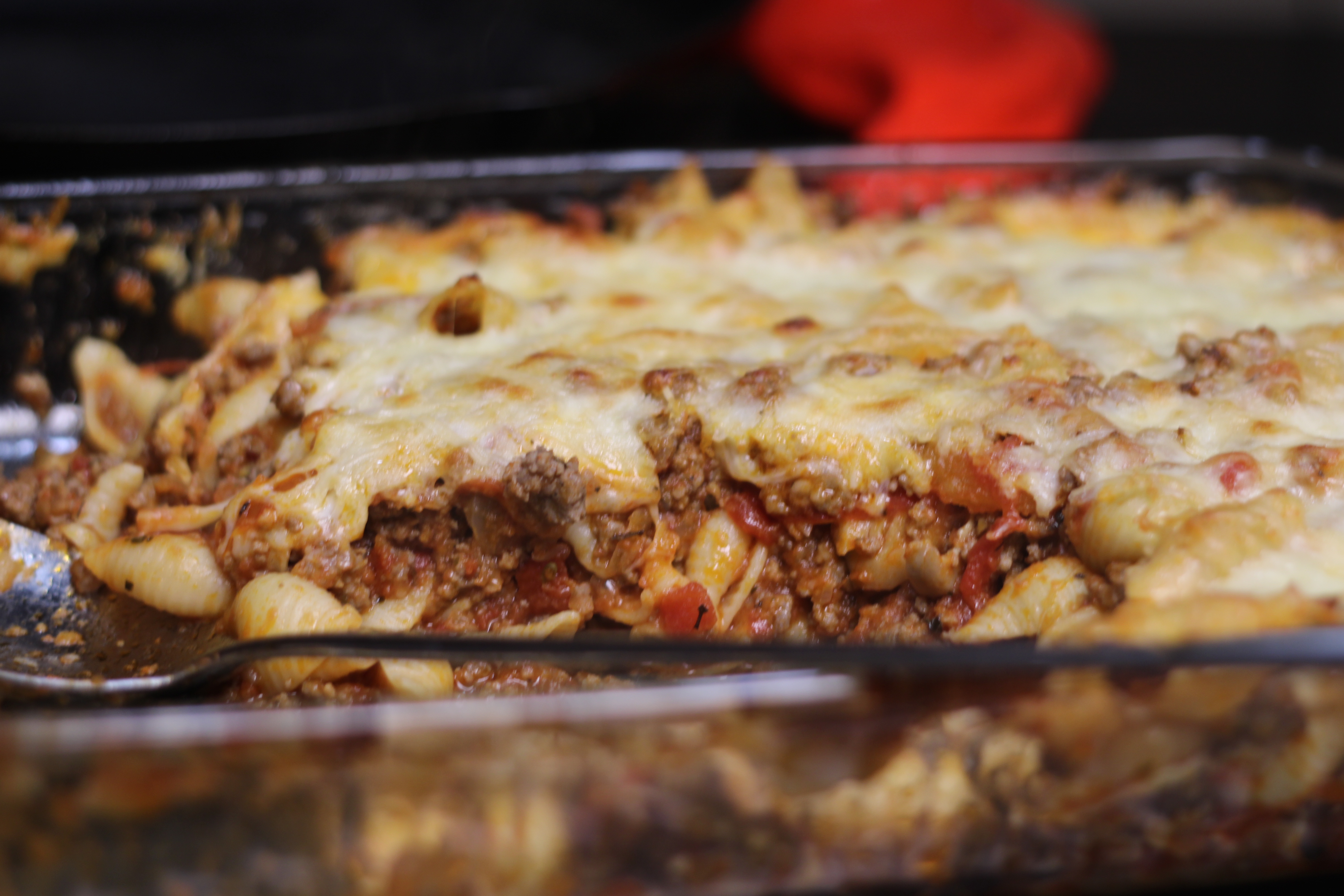 Since I wanted to include Hubby in our National Cheese Lover’s Day celebration, I decided to make something featuring cheese in a supporting roll rather than the star of the show. With shell pasta and a meat sauce, this Italian Pasta Bake has enough cheese that you know it’s there, but not so much that you don’t get all the flavors enveloped in this yummy bake.