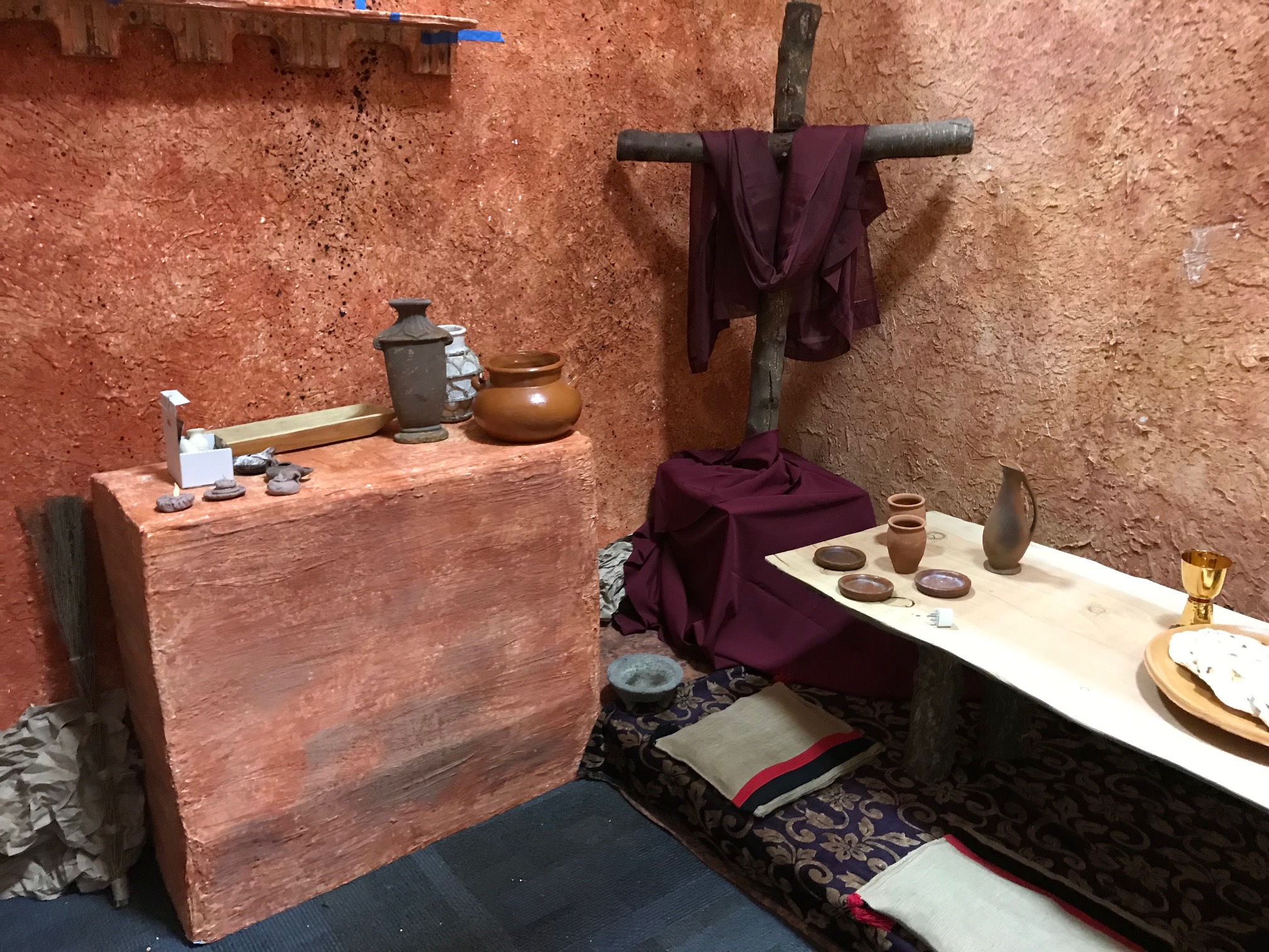 It was a huge undertaking, transforming our parish hall into an immersion experience beginning with Creation through to the Miracle of the Eucharist witnessed at by the faithful during Holy Mass. Each group of volunteers was responsible for creating one of the immersion rooms depicting one of the Twelve Stations. Once completed, more volunteers were needed to guide visitors through the experience. All in all, several hundred gave of their time to ensure the success of the Eucharistic Experience. Over 3,000 people attended the event over the course of its month-long run. Hubby and I helped to put together the Passover Room, as well as volunteered as Media Attendants to keep things running smoothly.