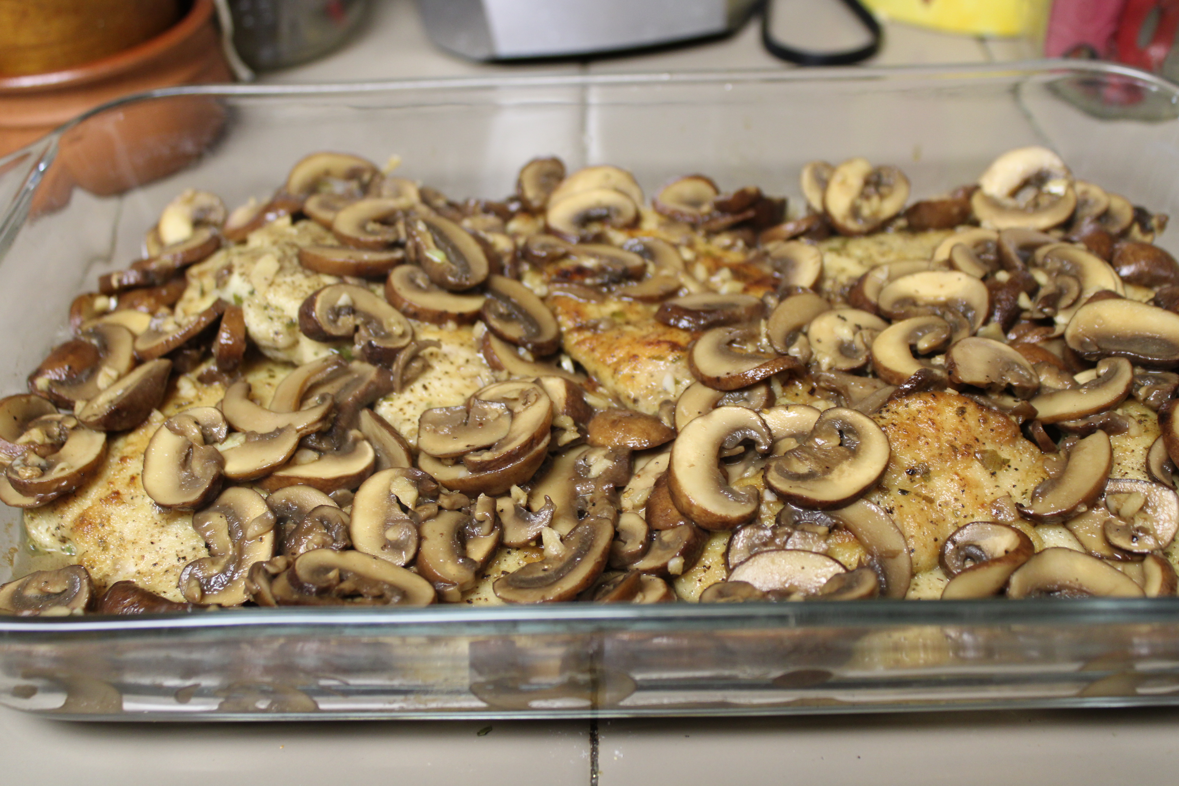 Remove chicken from the oven; smother with Mushroom Marsala Sauce and serve.