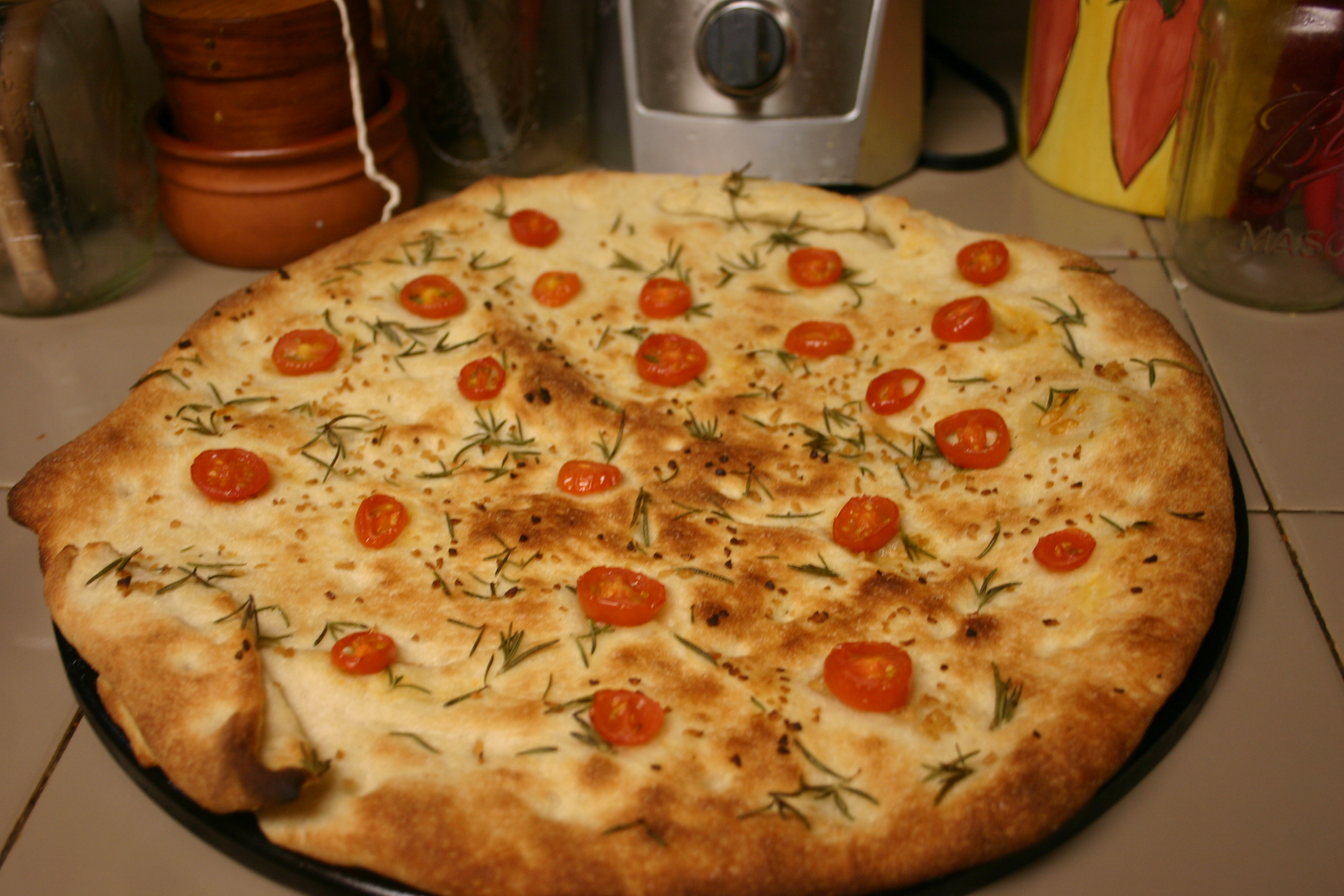 Garlic Pizza Bread with Rosemary and Tomatoes