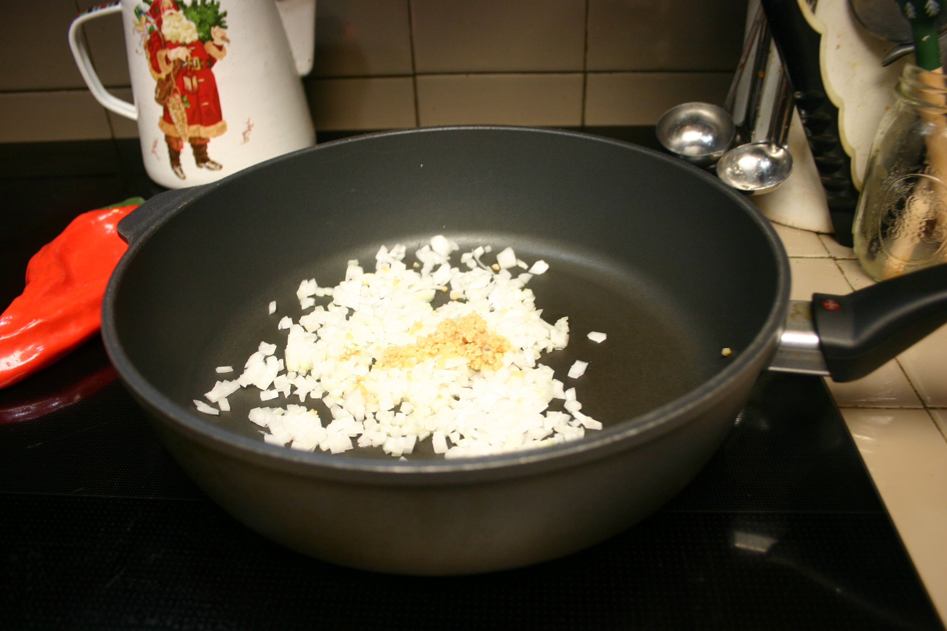 Cut onion in half, reserve half for another purpose. Peel and dice remaining half. Peel and dice garlic, set aside.