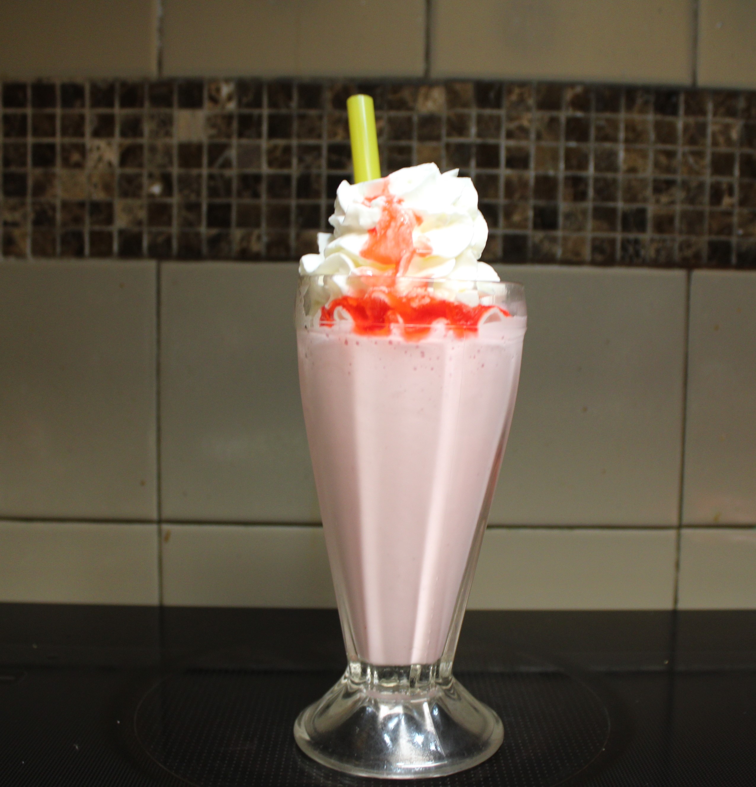 Pour mixture into well chilled glasses. Top with whipped cream and a drizzle of Strawberry Syrup. Serve, sip and enjoy.