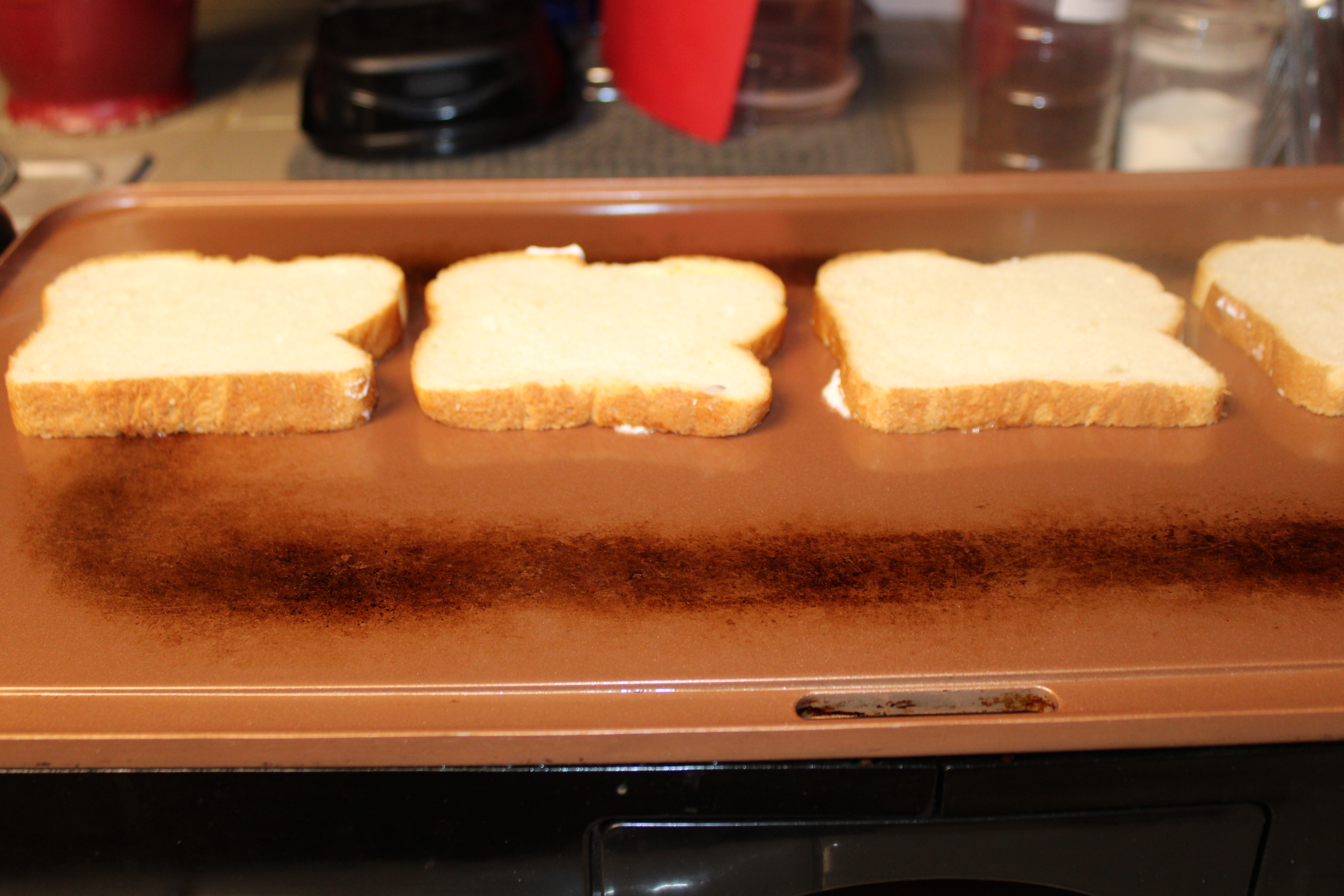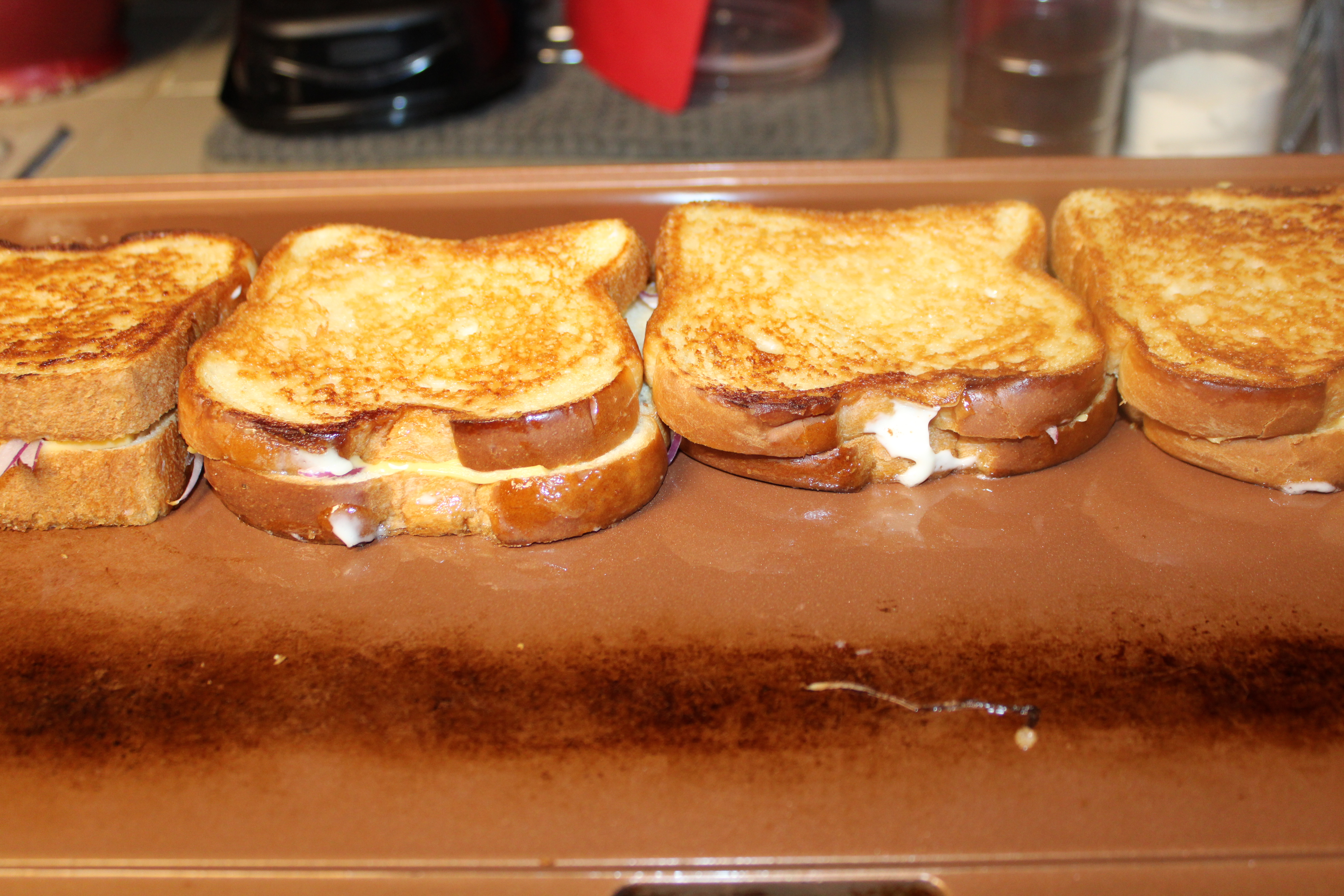 Just because the only cheese in the house at the moment happens to be American Processed Cheese (is that really even a cheese?), doesn’t mean we need to settle for a boring Grilled Cheese Sandwich for Potato Chip Day. No, we can jazz things up nicely. Yum! And who knows, maybe next year I’ll even make my own chips.