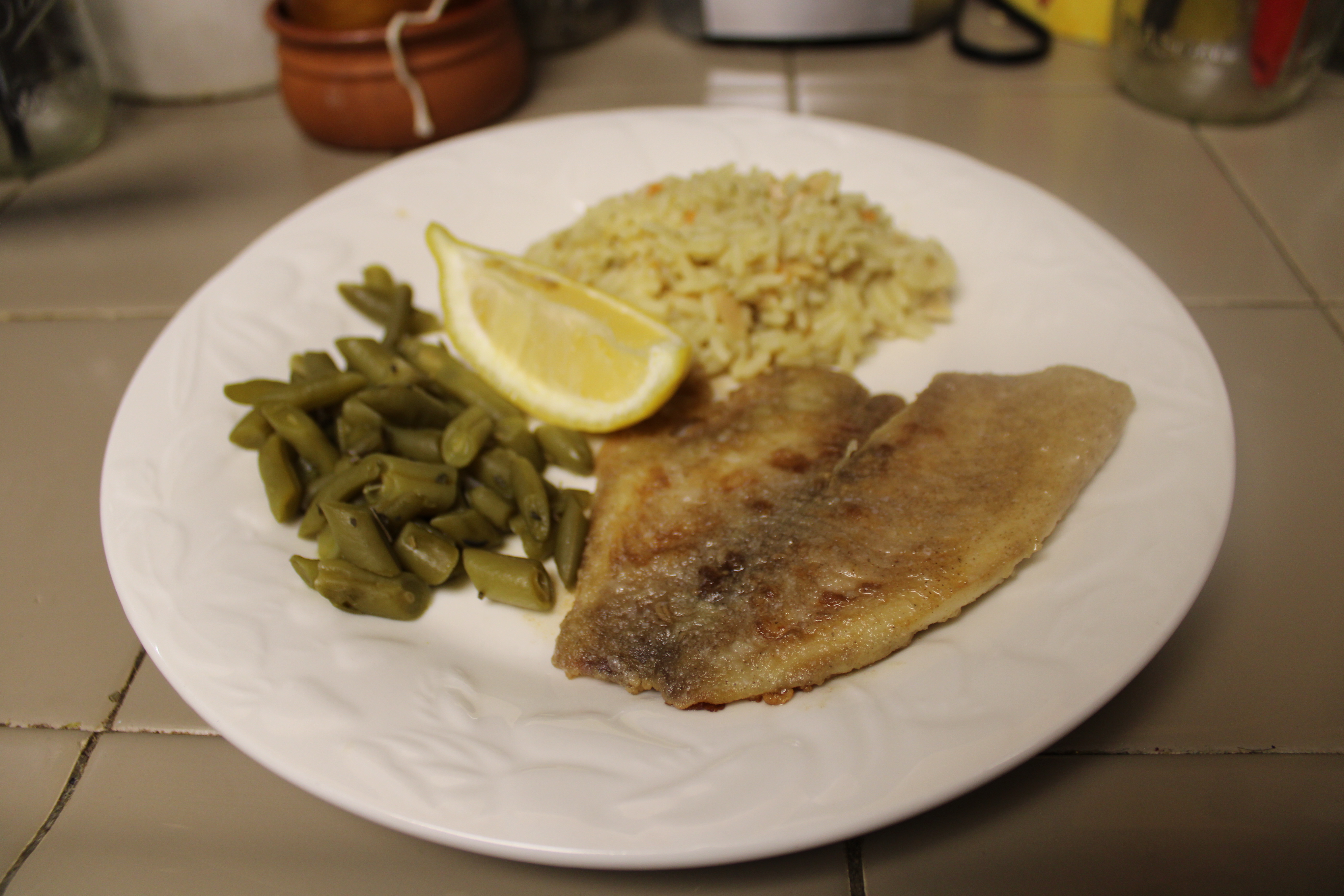 Rice Pilaf and Cut Green Beans are nice sides for a simple yet delicious supper.