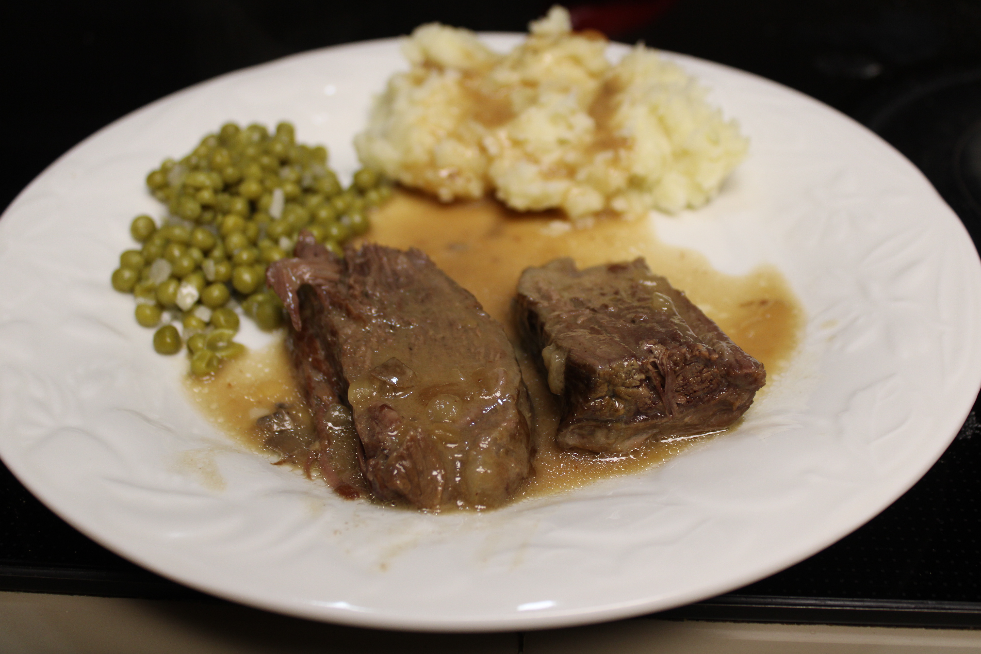 Kiddo actually cooked the roast, which tells you just how simple this recipe is to follow. Hubby and I had tickets to see The Chosen’s Season Four Theatrical release. (Very moving). When we left for the theater, it was too early to start the roast, and when we returned home, it would have been far too late. So Kiddo was left in charge. Dinner was amazing. This recipe was modified only slightly, utilizing a 2-pound chuck roast rather than the 4-pound roast in the original presentation. The sides are similar, the potatoes mashed rather than whipped, and the peas kissed with onion flakes rather than pearl onions. I do hope you enjoy and have a blessed day.