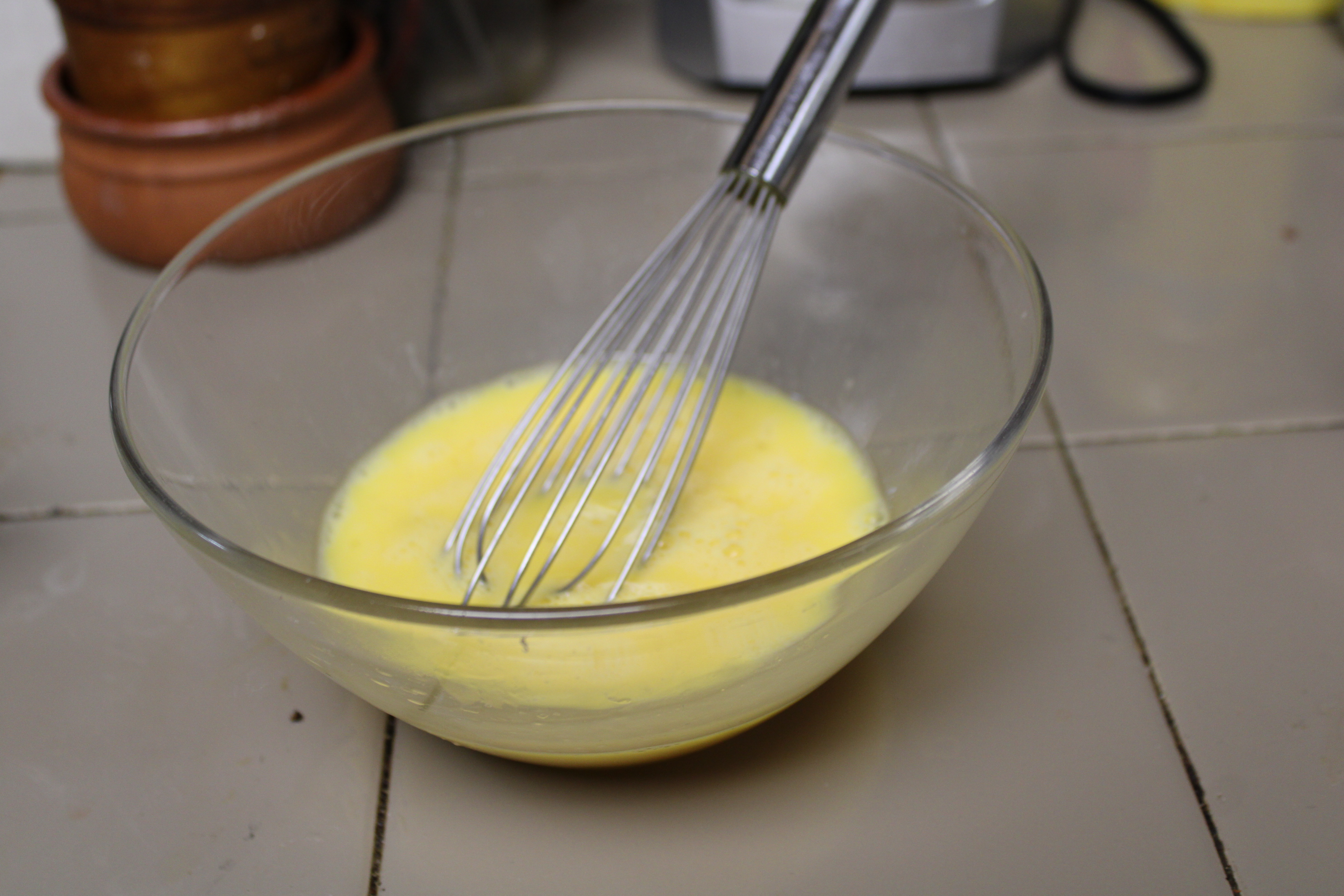 Lightly beat eggs in a bowl. Allow eggs to come to room temperature.