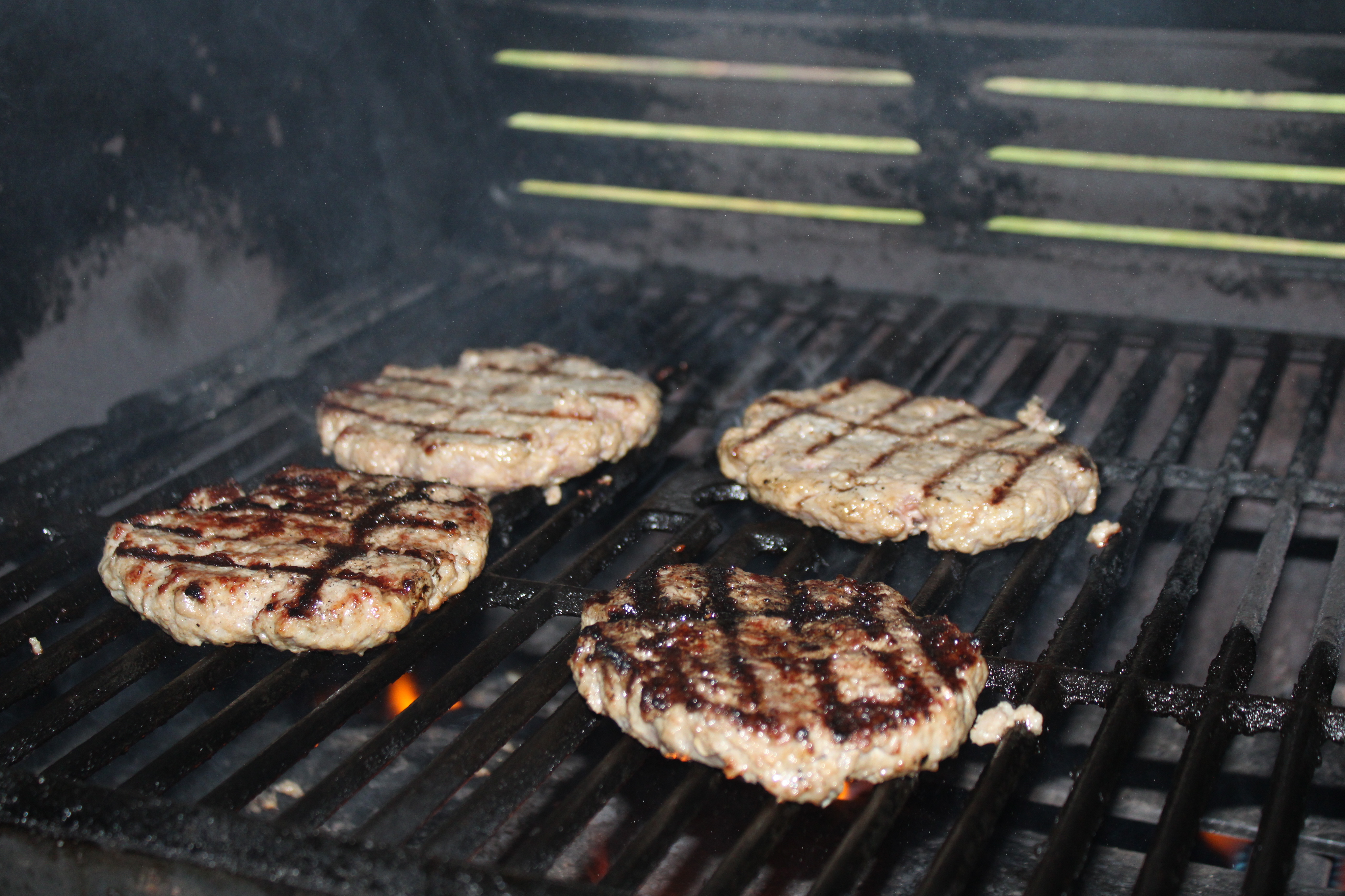 Heat grill to medium-high heat. Season burgers with salt and pepper. Grill burgers about 3 or 4 minutes per side. If desired, place sliced cheese over the patties and let melt before pulling burgers from the grill.
