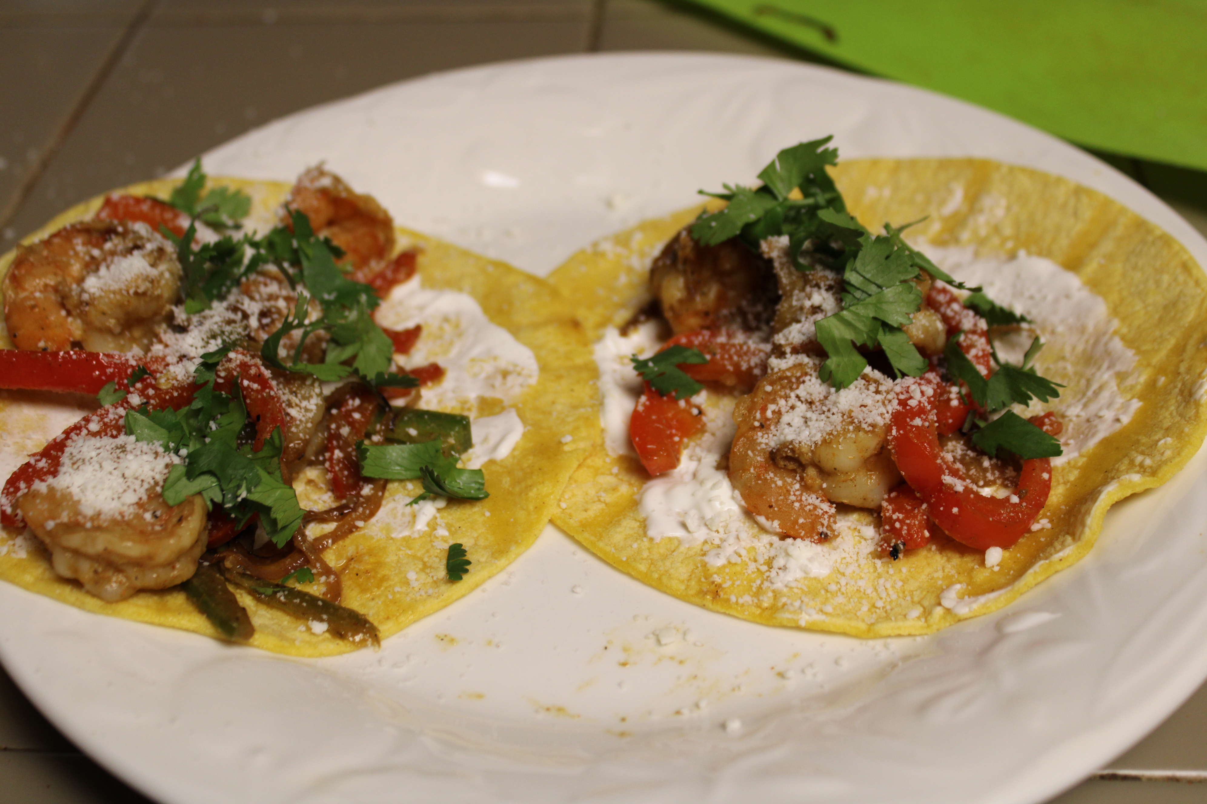 To serve, plate tortillas open-face. Top with shrimp mixture. Garnish with cilantro and cheese. Roll or fold and enjoy. Delicious with Mexican Rice, Refried Beans and an ocean of Margaritas!
