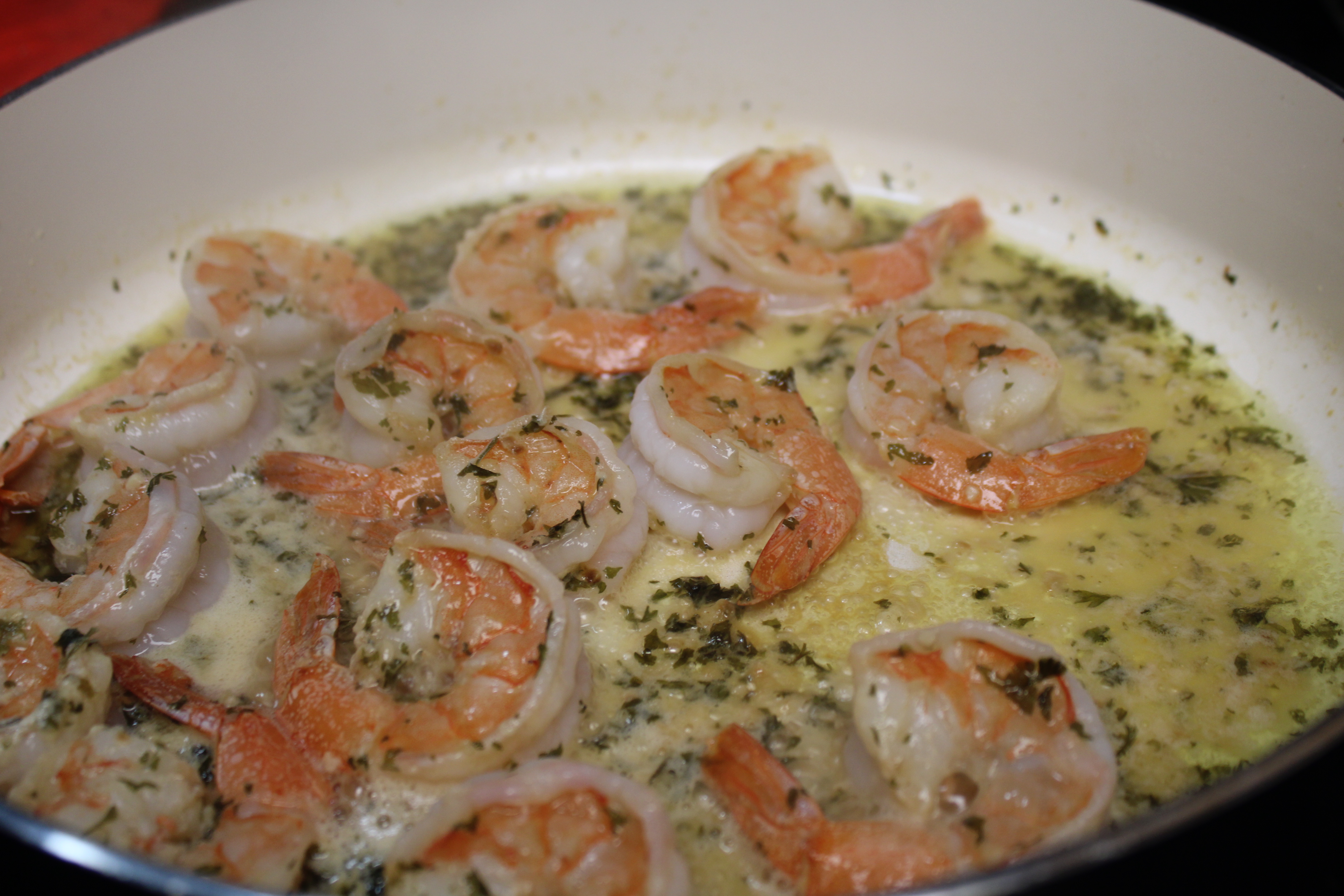 For a light spring supper, serve scampi with warm bread and a simple salad. A glass of wine, cold and crisp, is also a nice touch.