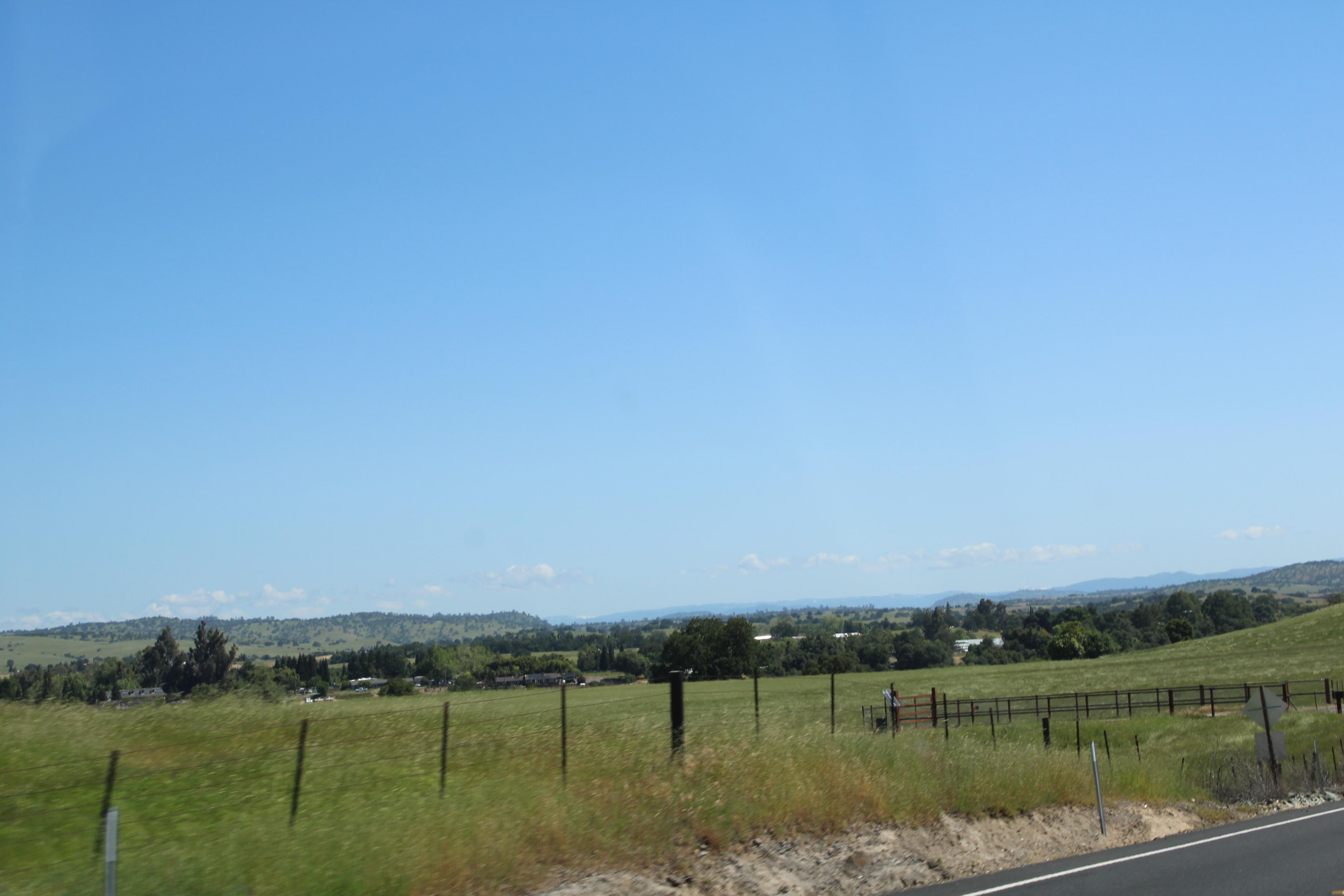 Out the window cow pastures gave way to rolling hills dotted with oak trees as we continued to climb. Little puffs of clouds meandered in beautiful blue skies. This is my California, I thought. The California I love. It were as though Hubby read my mind.
