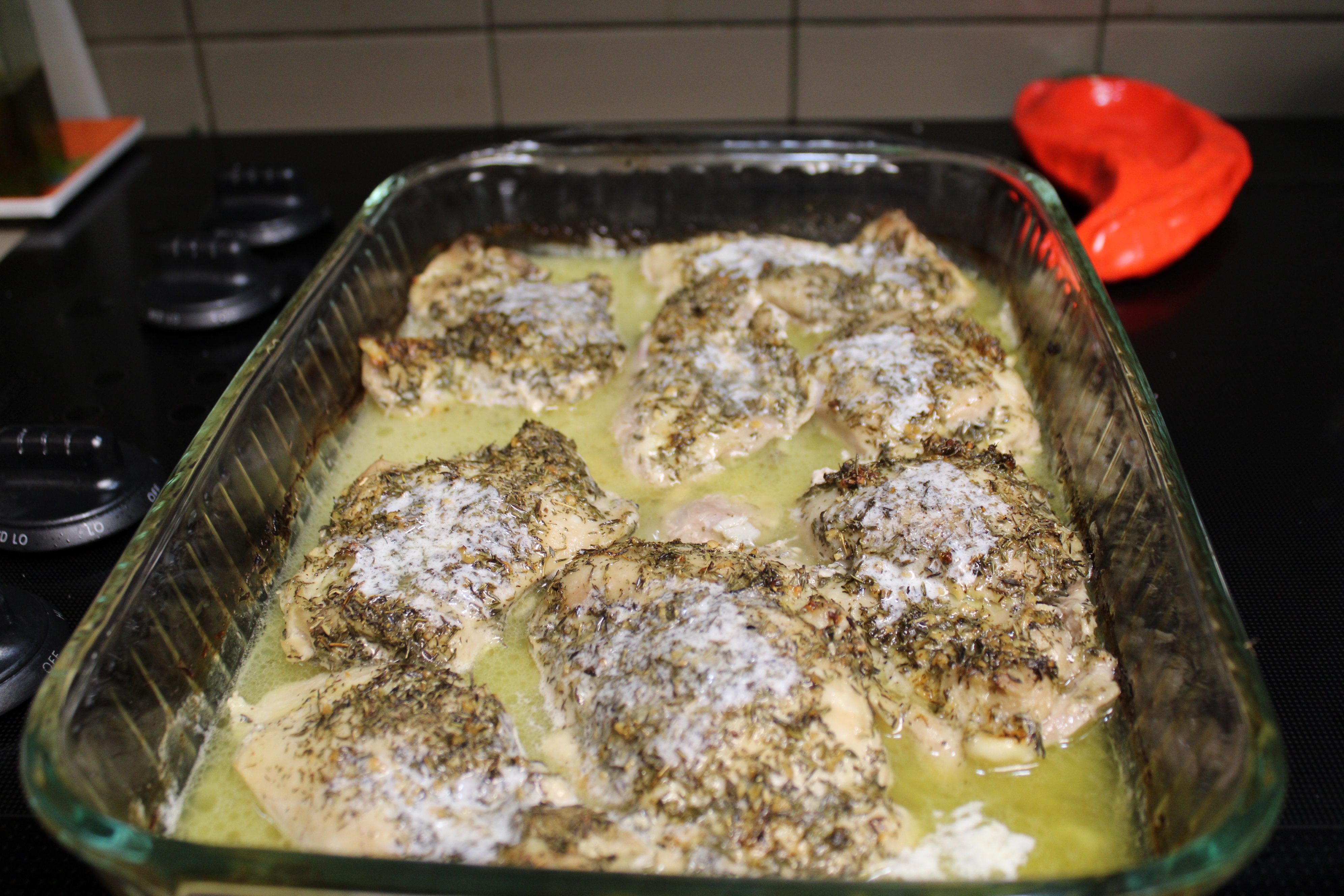 Bake uncovered in the heated oven for 40 minutes or until cooked through. Dice pieces of cold butter. Place a little pat of butter on each thigh. Increse oven to 400 and cook for a few more minutes for the butter to melt and baste the thighs.