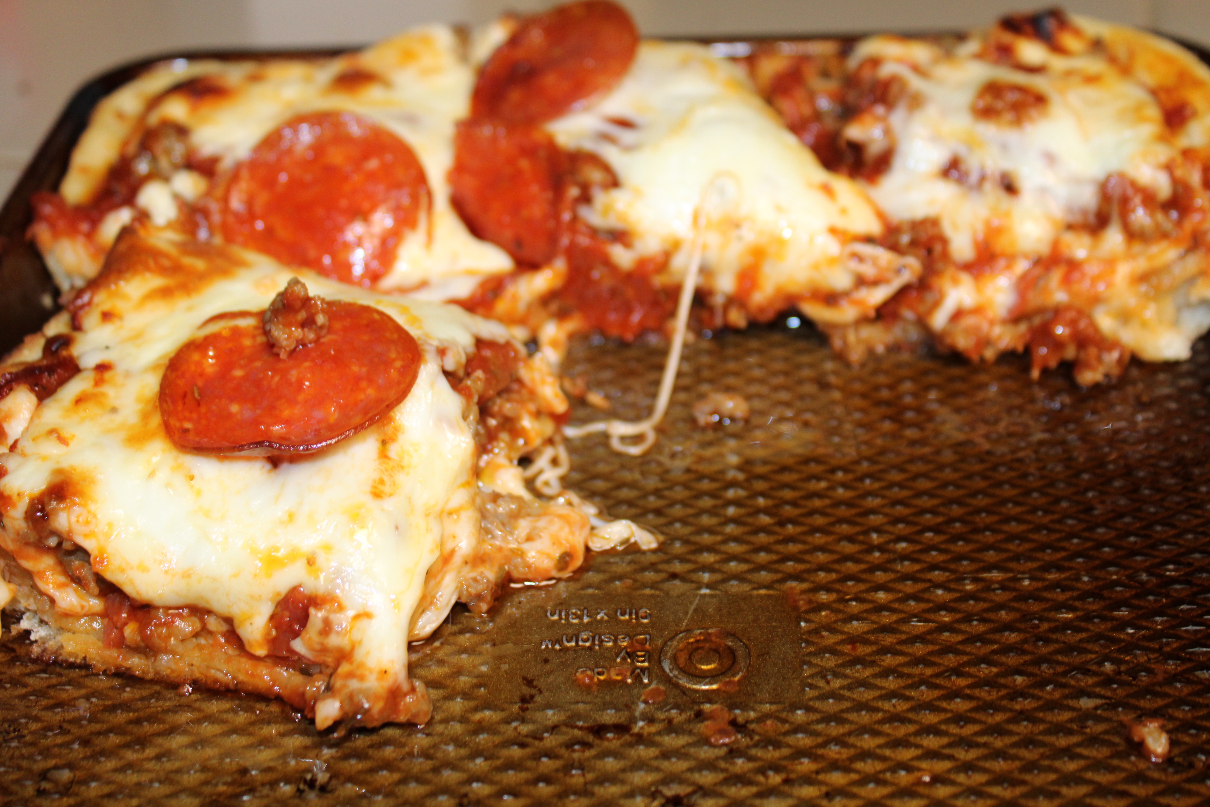 Serve with a ton of napkins and your favorite pizza beverage. Mine is Root Beer.