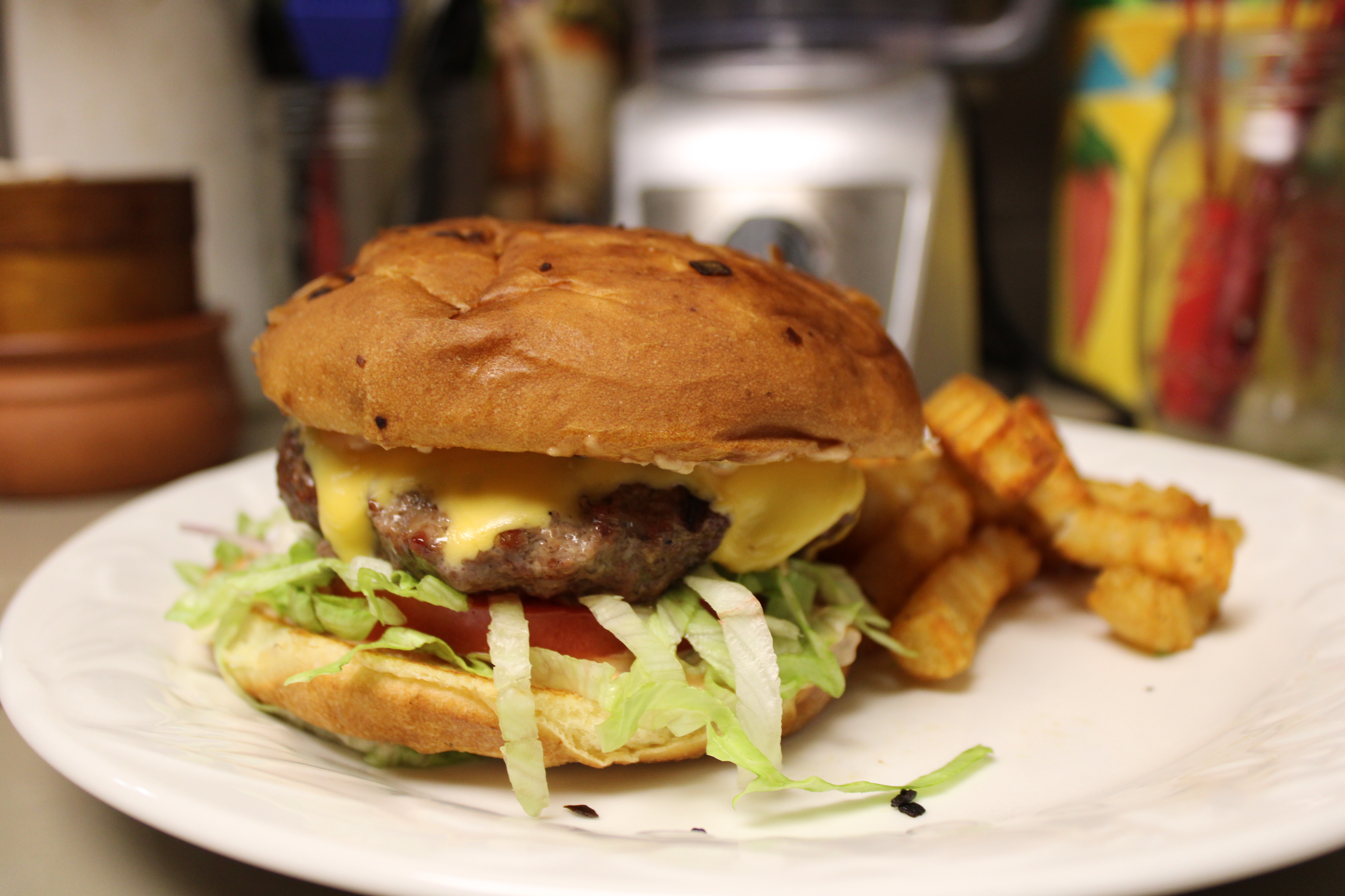 Heat grill to medium-high heat. Oil well to prevent burgers from sticking. Cook burgers to liking, about 4 minutes or so per side. Once the burgers are cooked, top each with 2 slices of cheese. Close grill and let cheese melt.