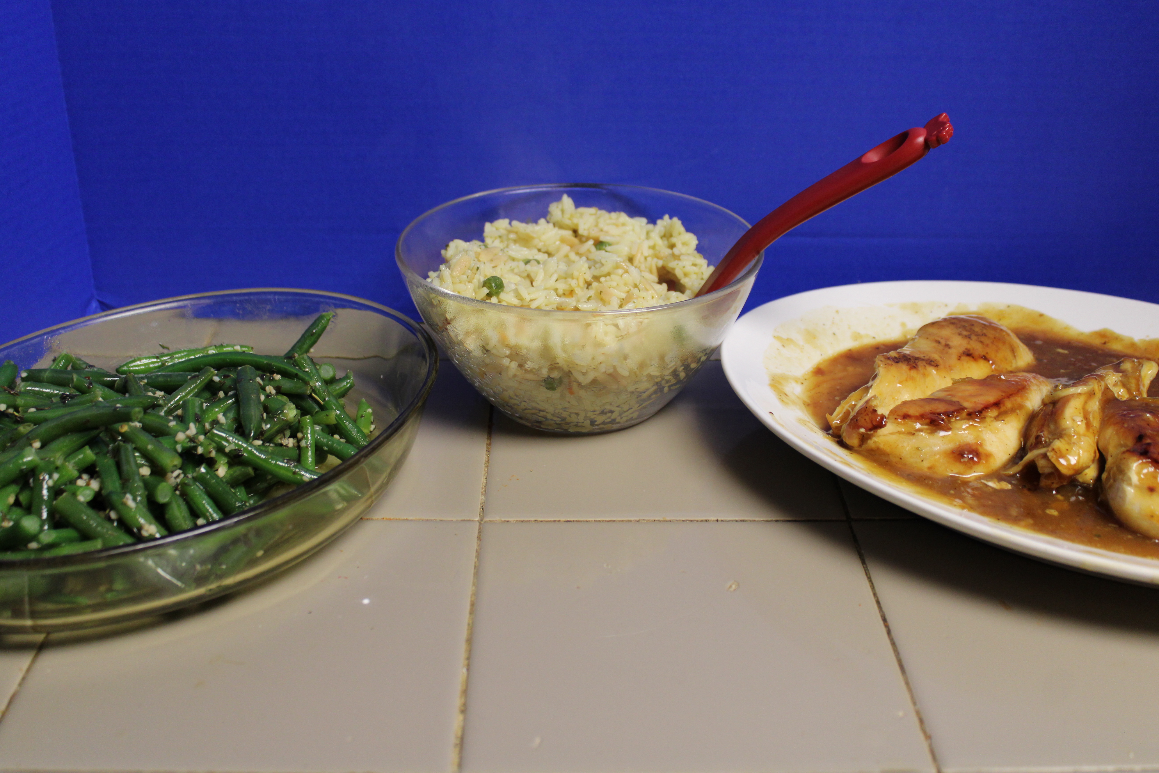 Rice Pilaf makes a nice addition to this beautiful supper.