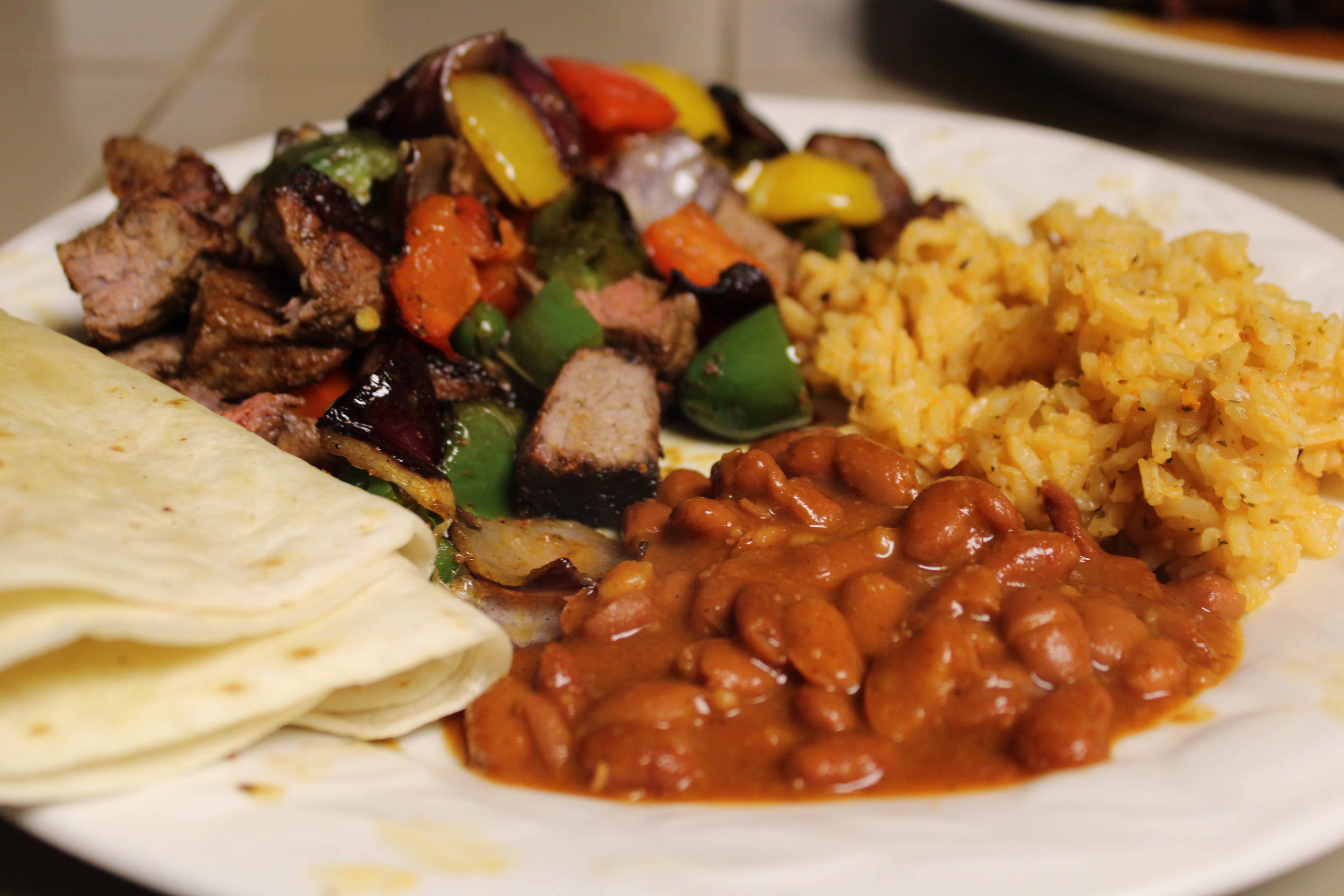 Heat grill to medium-high. Skew meat, peppers and onion onto the skewers, alternating. Place skewers on grill and cook to desired doneness. Remove skewers to a large serving platter, let rest with the tortillas for serving are warmed.
