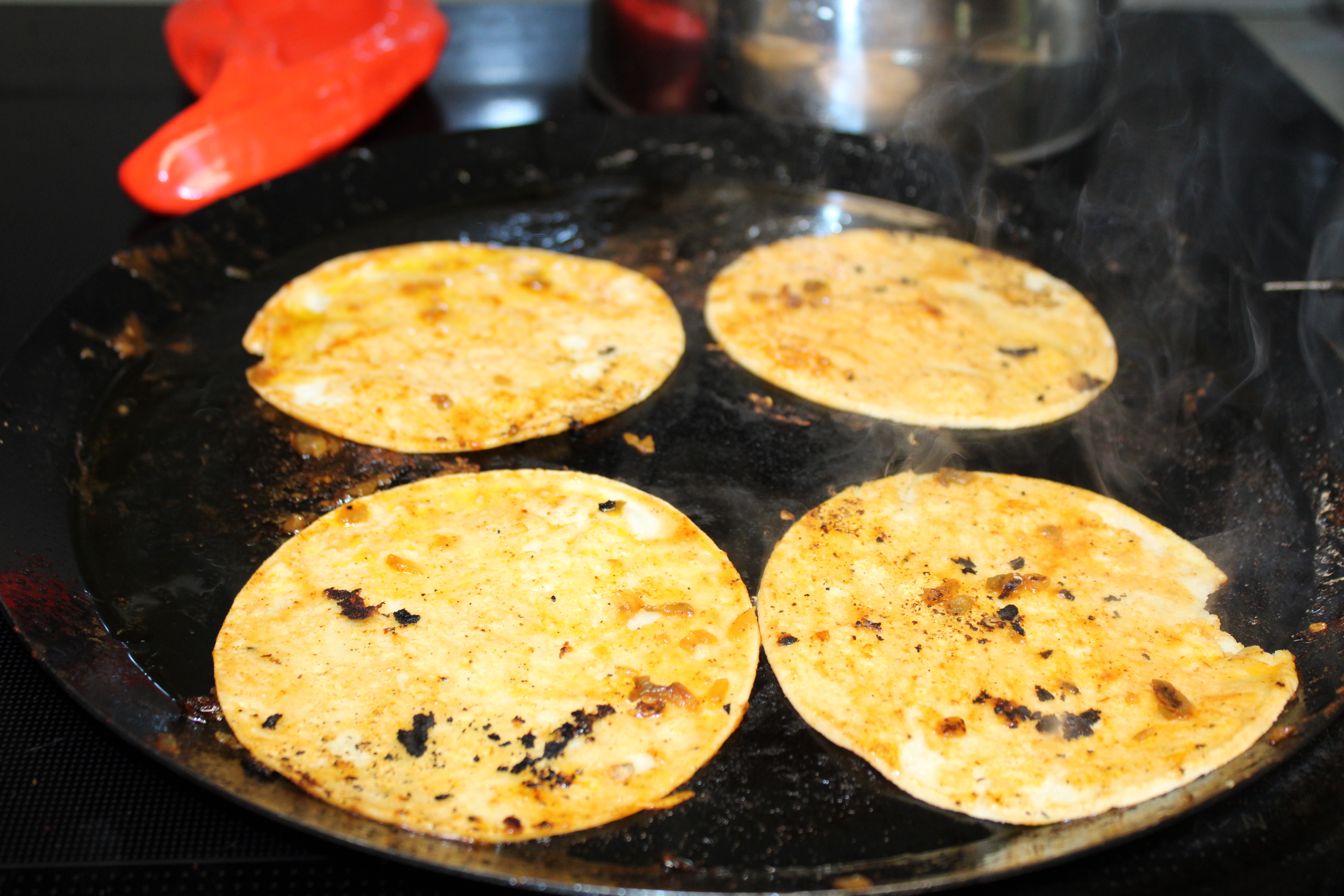 Once the steak is sliced, have a little taste. If more heat is desired, sprinkle with Cayenne and Chipotle seasonings. Toss to mix. Add Jalapenos to the finished tacos.
