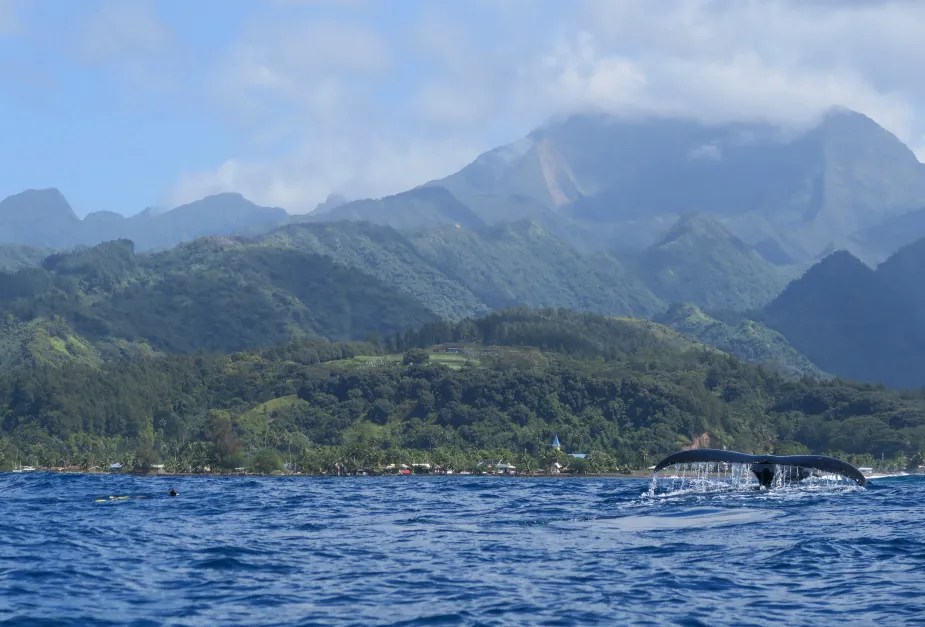 Gray whales are generally shy. Yet in certain places in this world, their curiosity gets the better of them. The first time Hubby and I saw gray whales was in Alaska. Whale watching in Alaska, as most places within US waters, is highly regulated. There are distances that must be maintained, so most encounters are from afar. Our second whale experience was in Tahiti. There interaction with the whales isn’t so much regulated by the government as it is by the tour guides themselves. In the coves where whales often gather, boats will simply float, engines off, and wait. Our boat captain, Captain Ernie, lowered an underwater speaker into the beautiful aqua lagoon. He played Madonna’s Material Girl. It wasn’t long before a mother and her calf swam to the boat and sort of hung out, enjoying the music. It was amazing. As other boats approached the lagoon, those who had arrived first began to depart. Self-regulating meant no more than five boats inside the lagoon at a time for the safety of the mothers and their calves. When the gray whales do not feel threatened, they approach you.