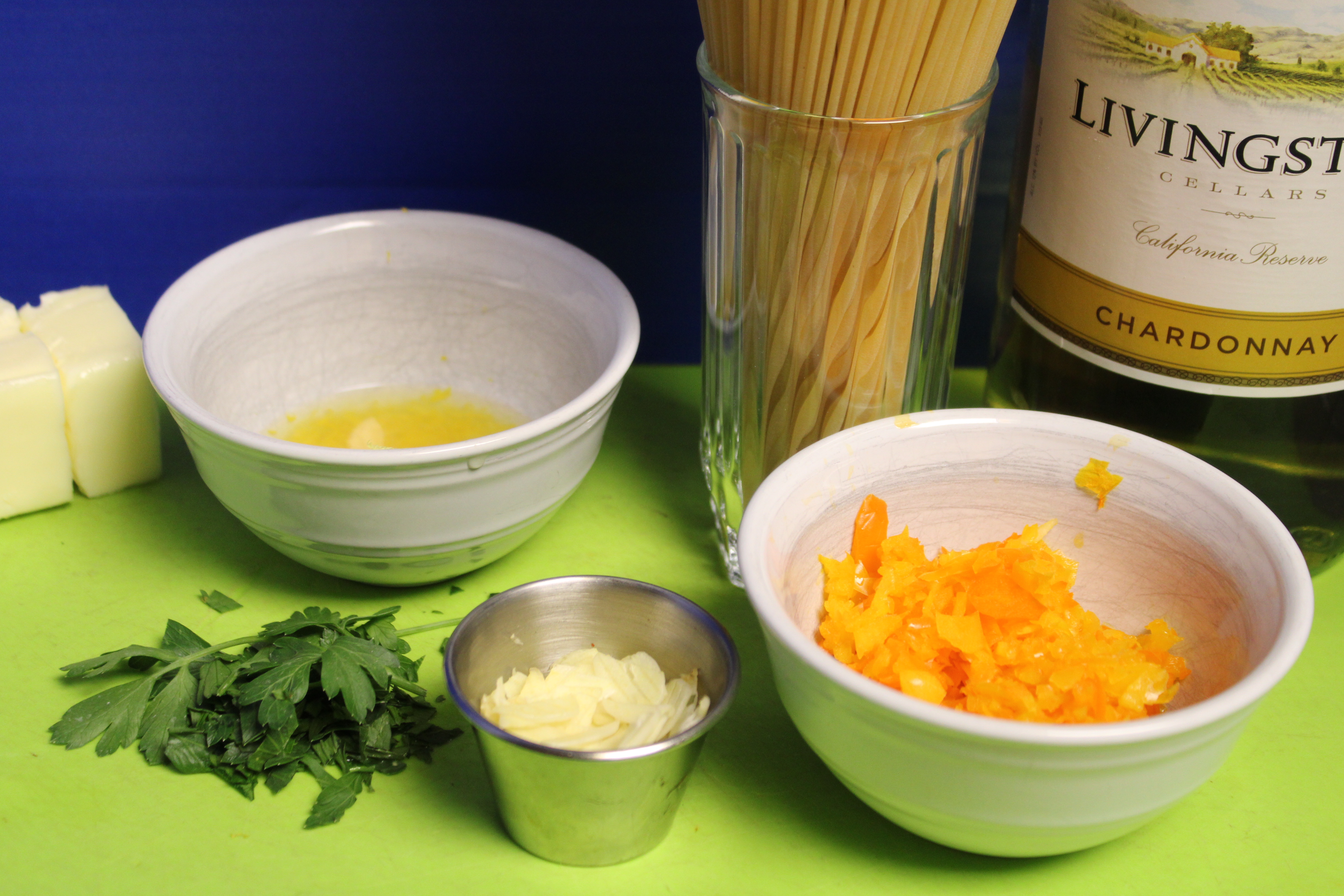 The original recipe called for just 1 tablespoon Butter mixed with 1 tablespoon Olive Oil to sauté the shrimp along with 2 mini bell peppers and a single clove of garlic. No, for Hubby I knew that would not due. I increased the peppers, garlic and the butter. We added both lemon juice and my favorite cooking ingredient, lemon zest. When you have all that lemony buttery flavor, naturally you’ve got to reach for the white wine. This was a Friday to be remembered. A little salad, some garlic bread and a bottle of wine. Who could ask for more?
