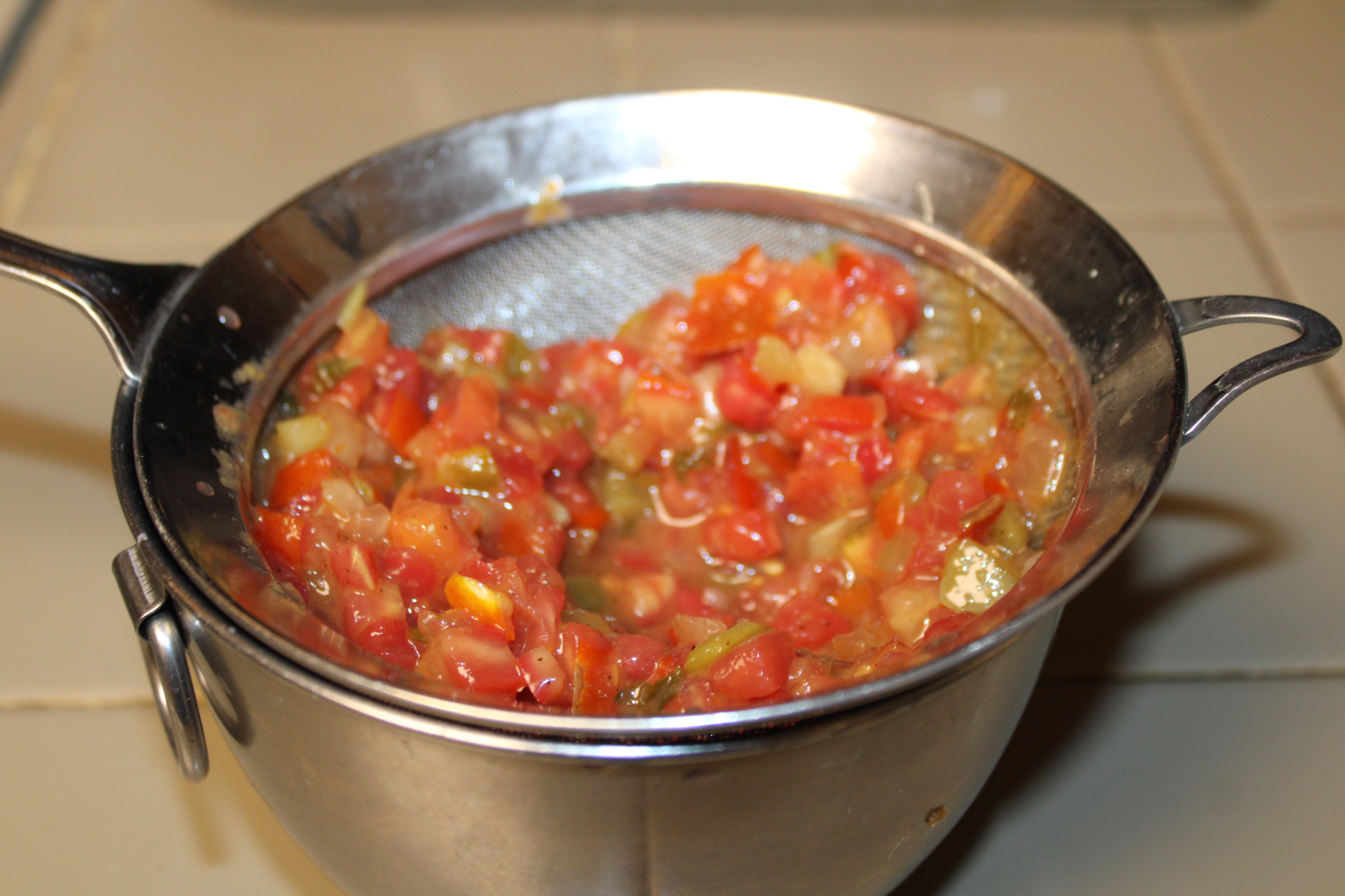 While the meats and vegetables cook, drain chunky salsa of excess liquids.