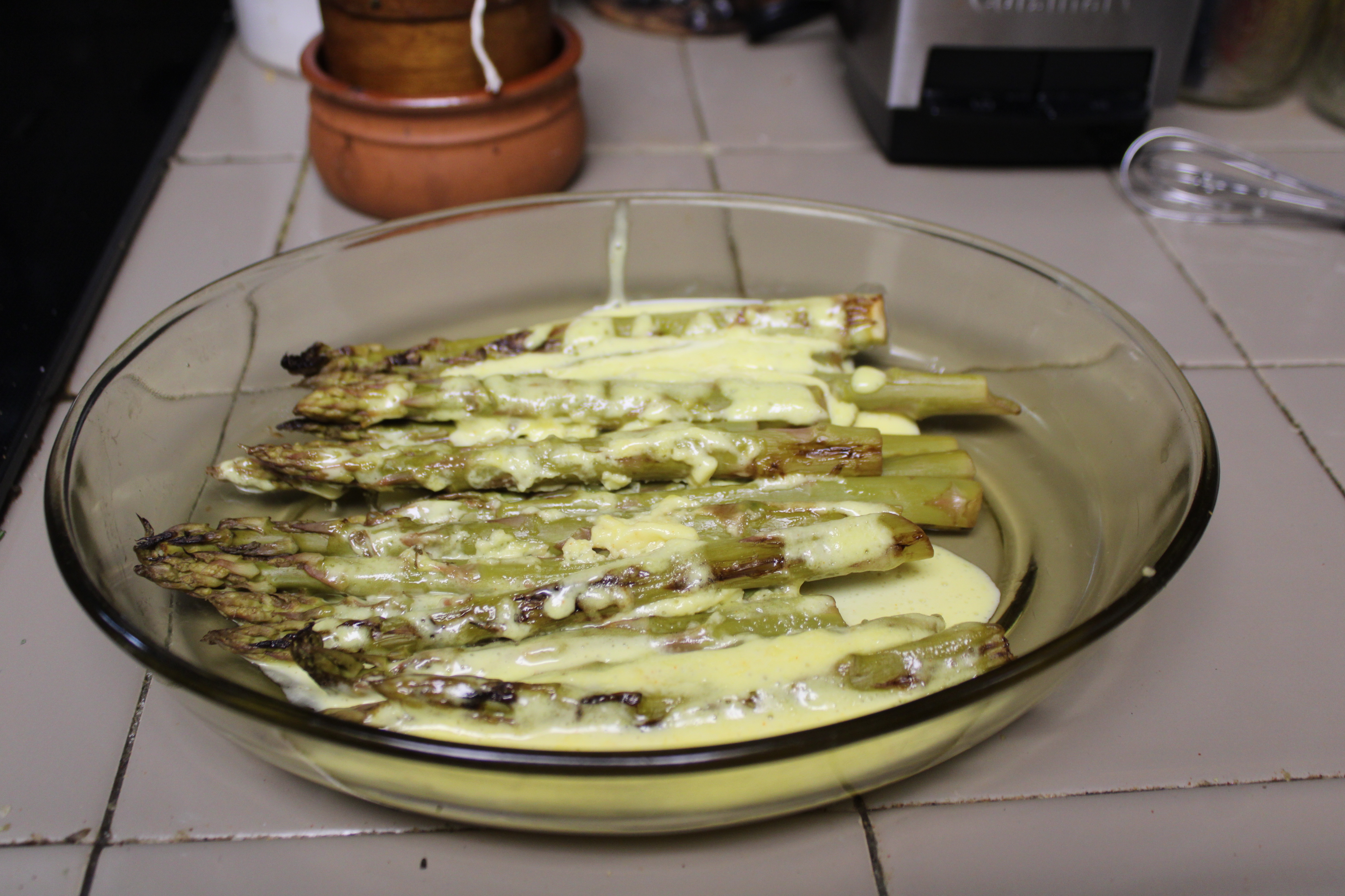 Delicious with Garlic Mashed Potatoes and Asparagus in a Hollandaise Sauce.