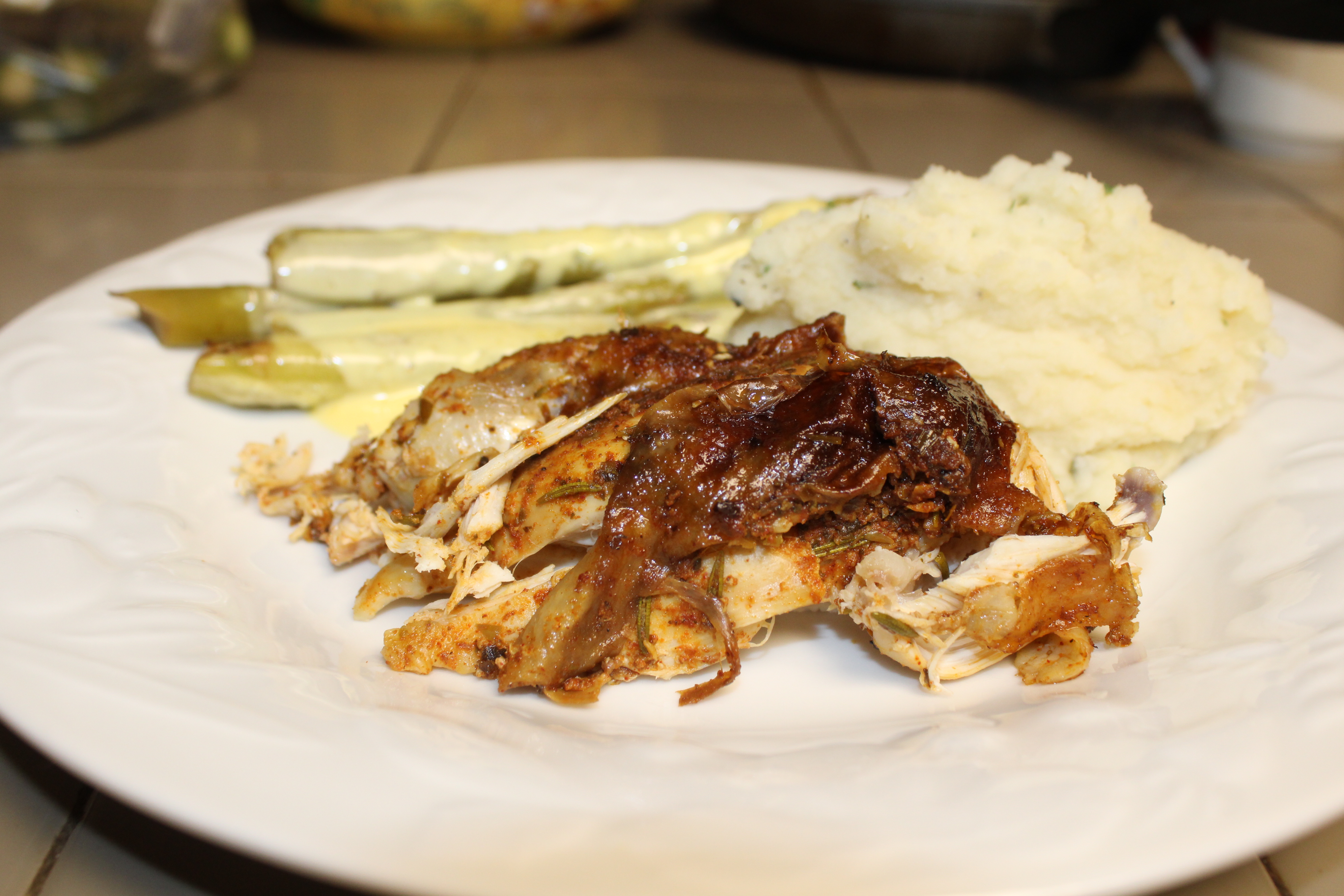 Today’s recipe share is a Sunday after Mass favorite – game hens. I’ve heard tell that game hens cook up dry. Maybe it’s the way I thaw out my hens that help to keep them moist. I put the frozen birds in a large pot of cold water. Replace the water periodically until the birds are thawed. Here game hens are sold frozen, in a tight package. When I cut the wrapping open, water pours out. I’m sure the hens soak in some of that water. I also roast them in a pan with plenty of liquid in the bottom. My game hens are never dried out.