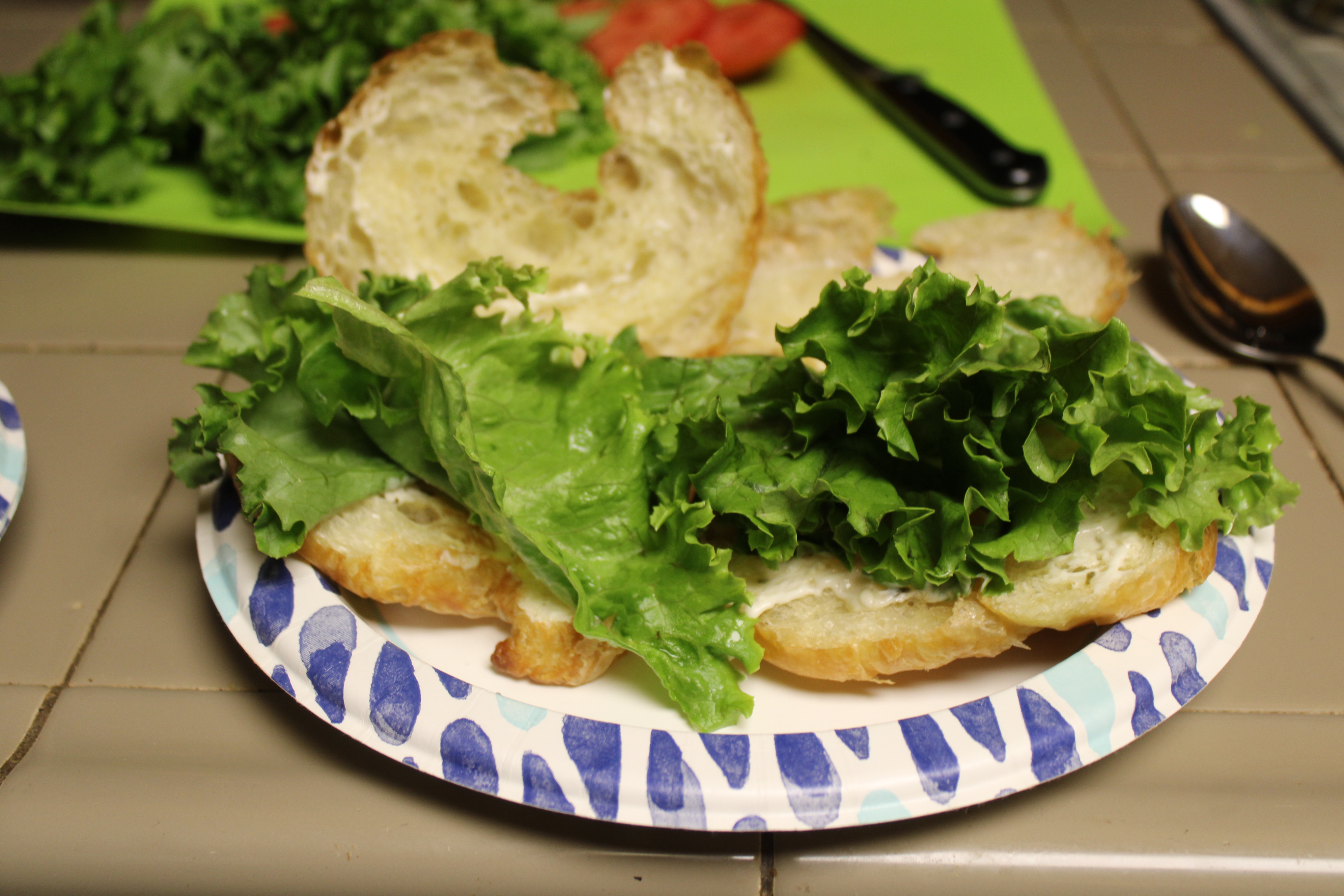 Finely chop onion and celery, set aside. Slice tomato and tear lettuce to fit on rolls, set aside.