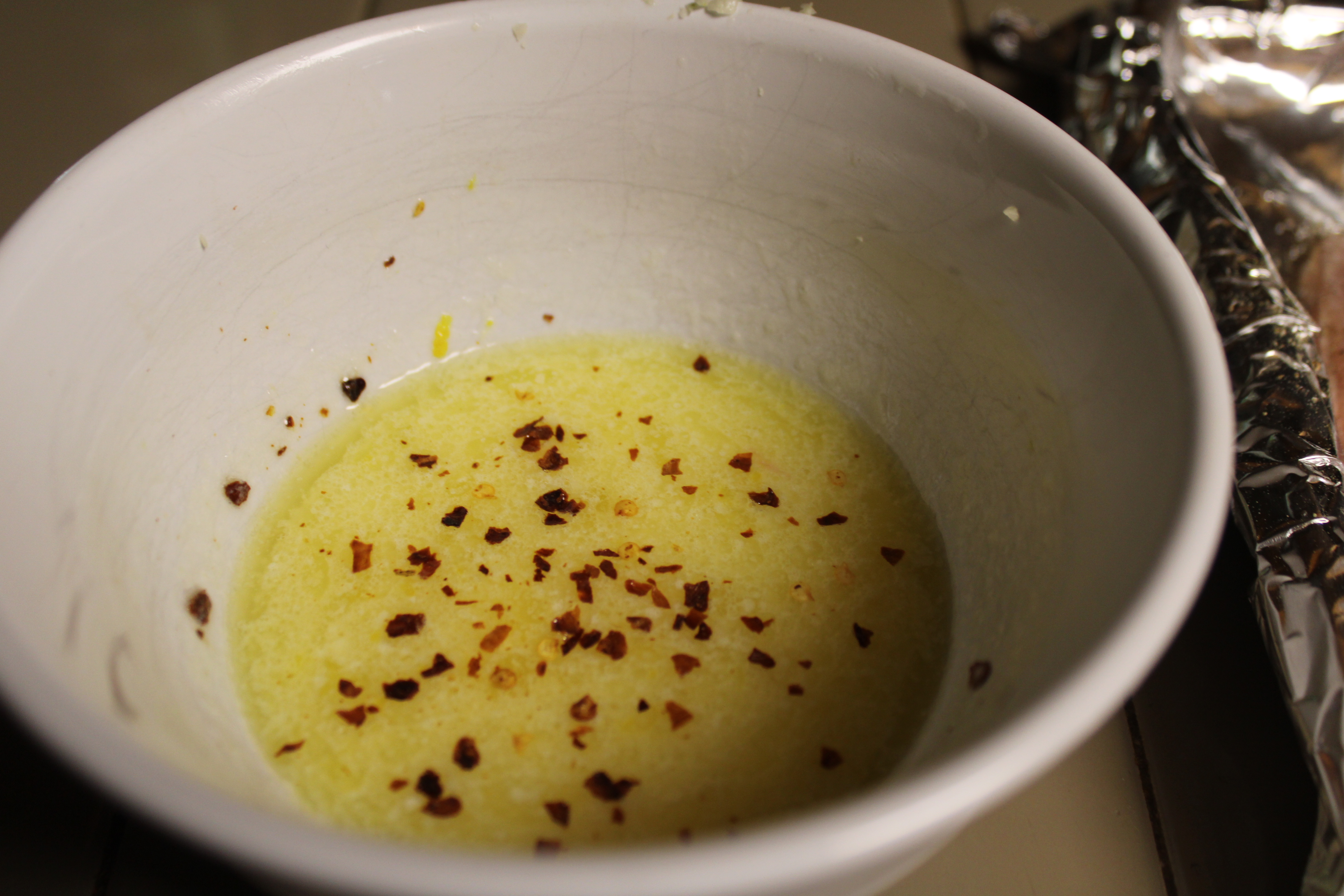 Melt butter, peel an mince garlic. Cut 1 lemon in half. Juice and zest half a lemon. Slice remaining lemons into rounds. Set aside. Mix butter, garlic, pepper flakes, lemon juice and zest together.