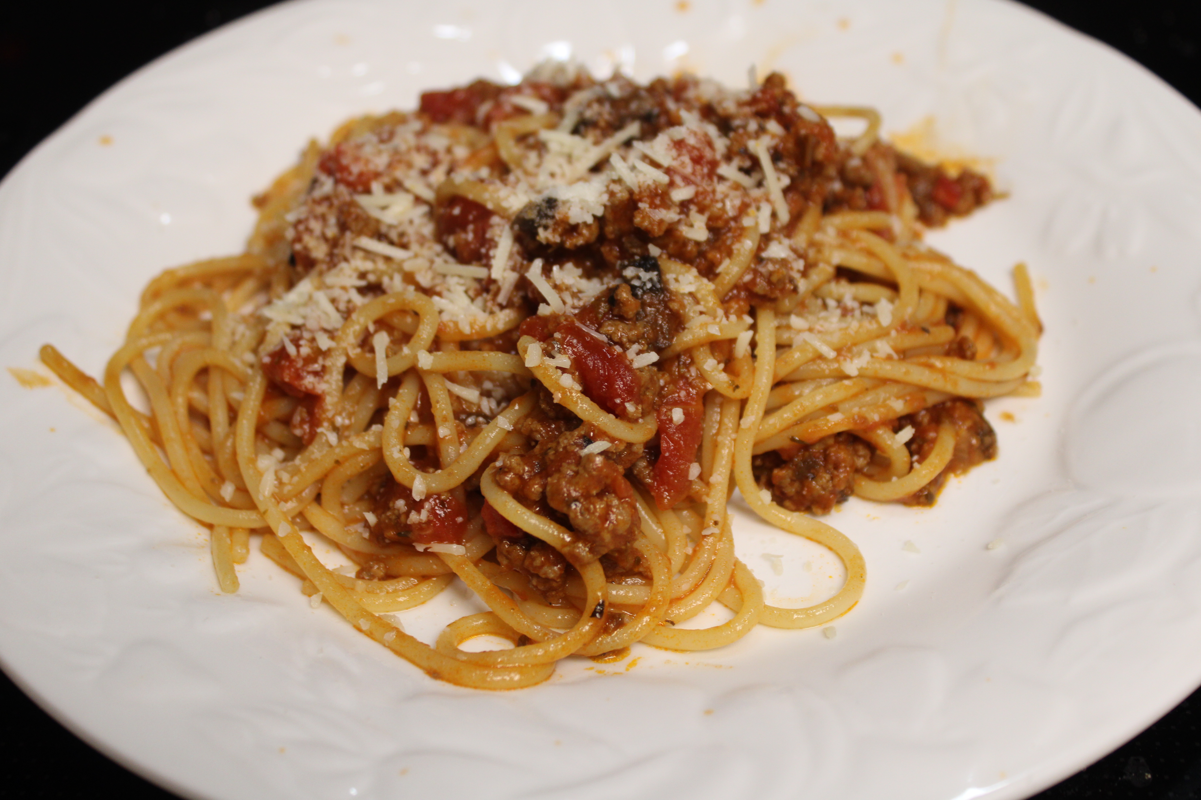 Top pasta with meat sauce, pulling noodles through the sauce to coat well. Serve with a simple salad, warm bread and a glass of wine. Most of all enjoy.
