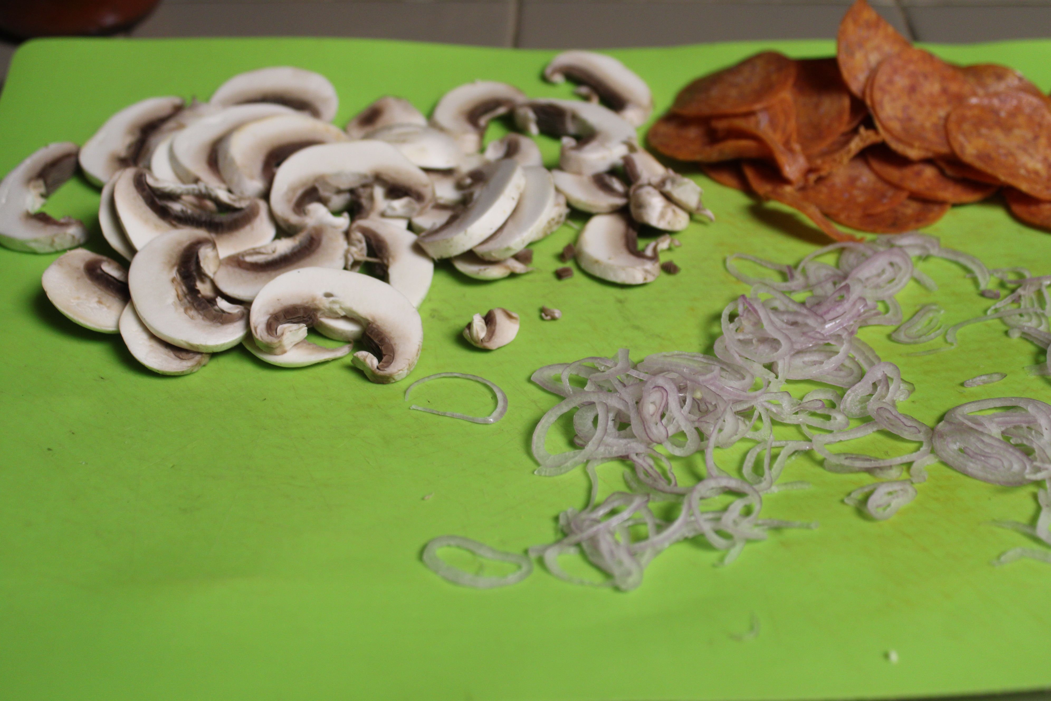 Enough rambling from me. Let’s get to cooking, shall we? Oh, and while this started out as a Sausage Pizza, when I discovered we had some Pepperoni in the fridge, I thought why not? The pepperoni and shallot are purely optional, but a nice touch all the same. I know, I know – we’re supposed to be cooking by now.