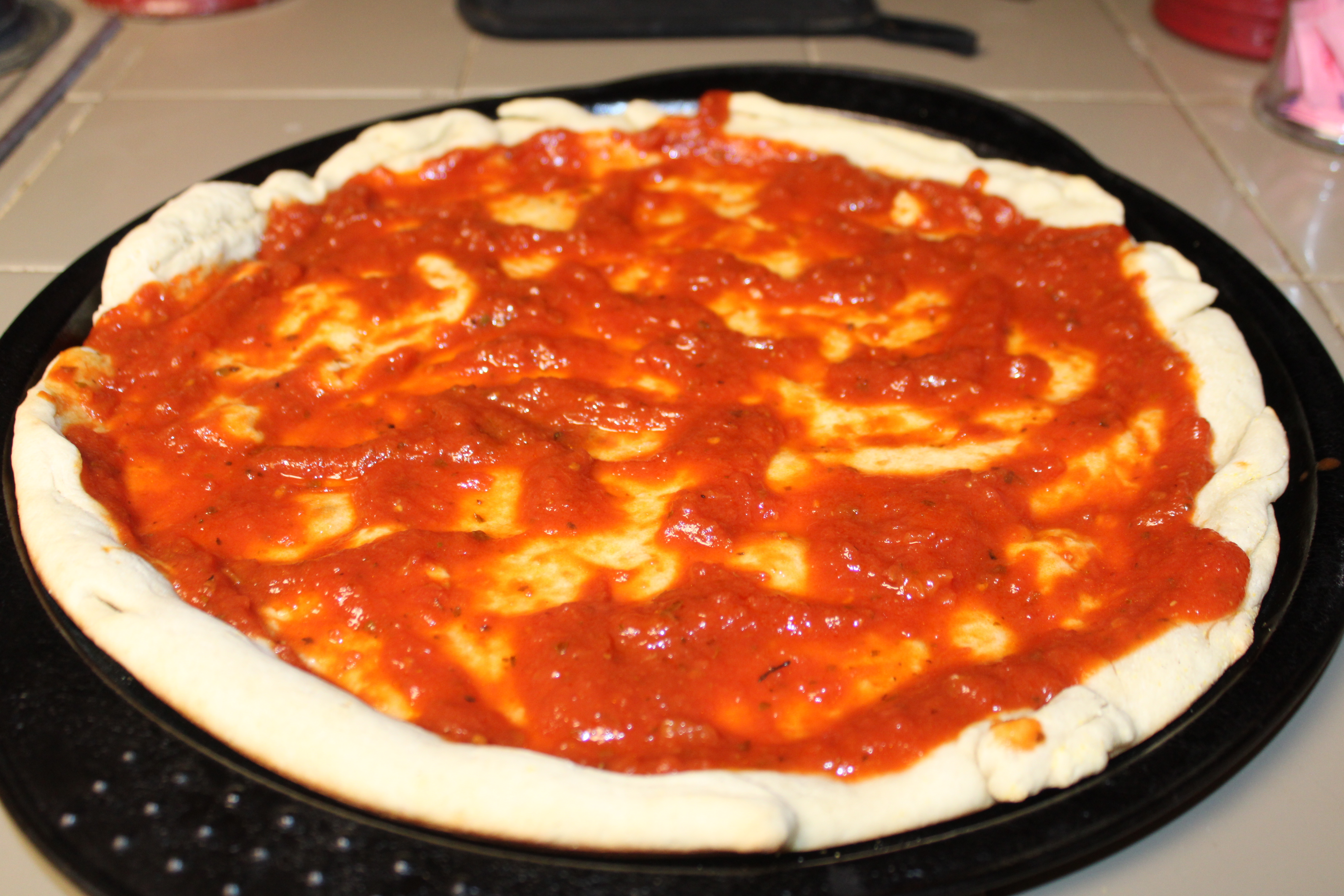 I like tomoto sauce and lots of veggies on mine – hold the cheese!