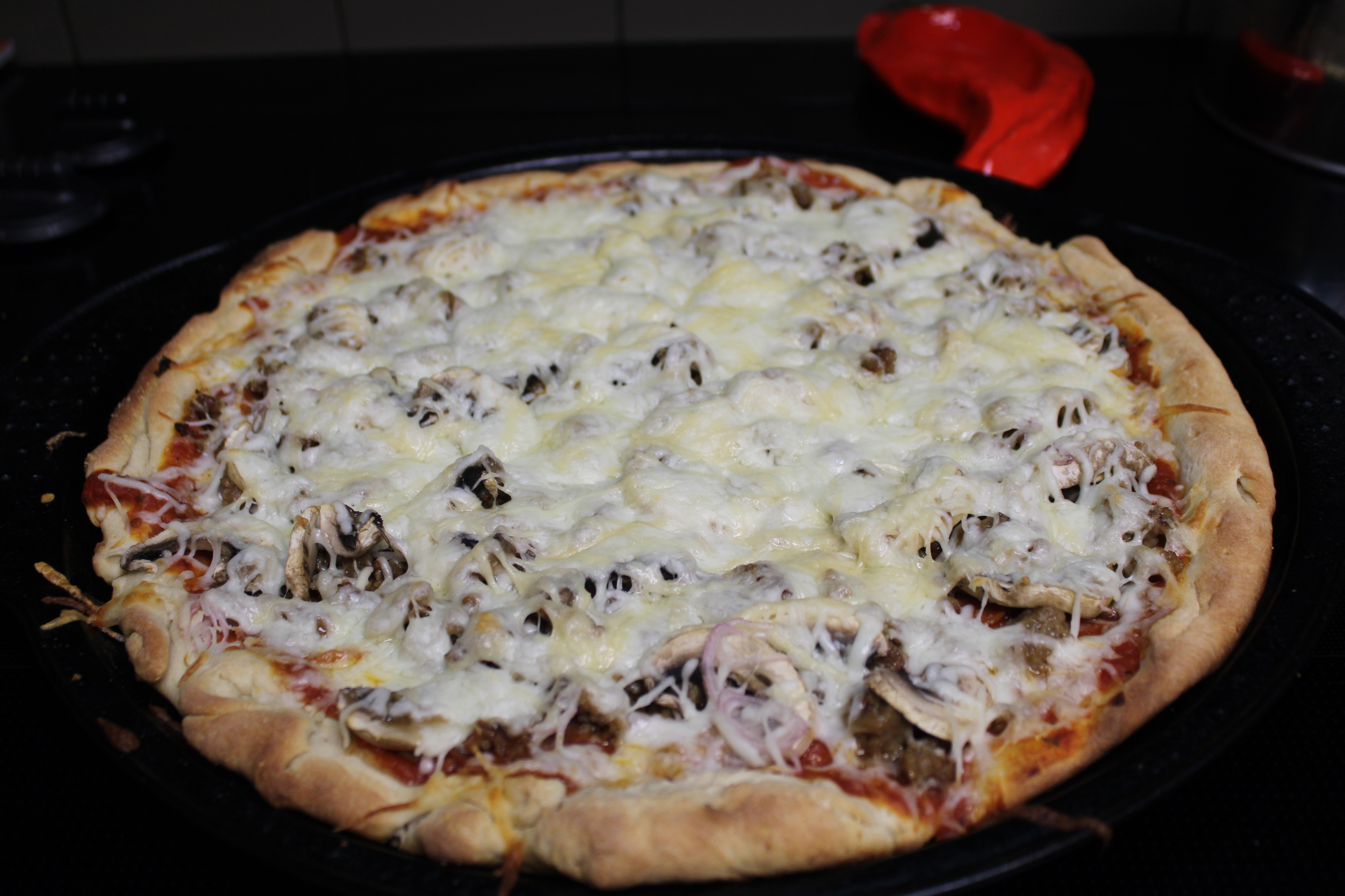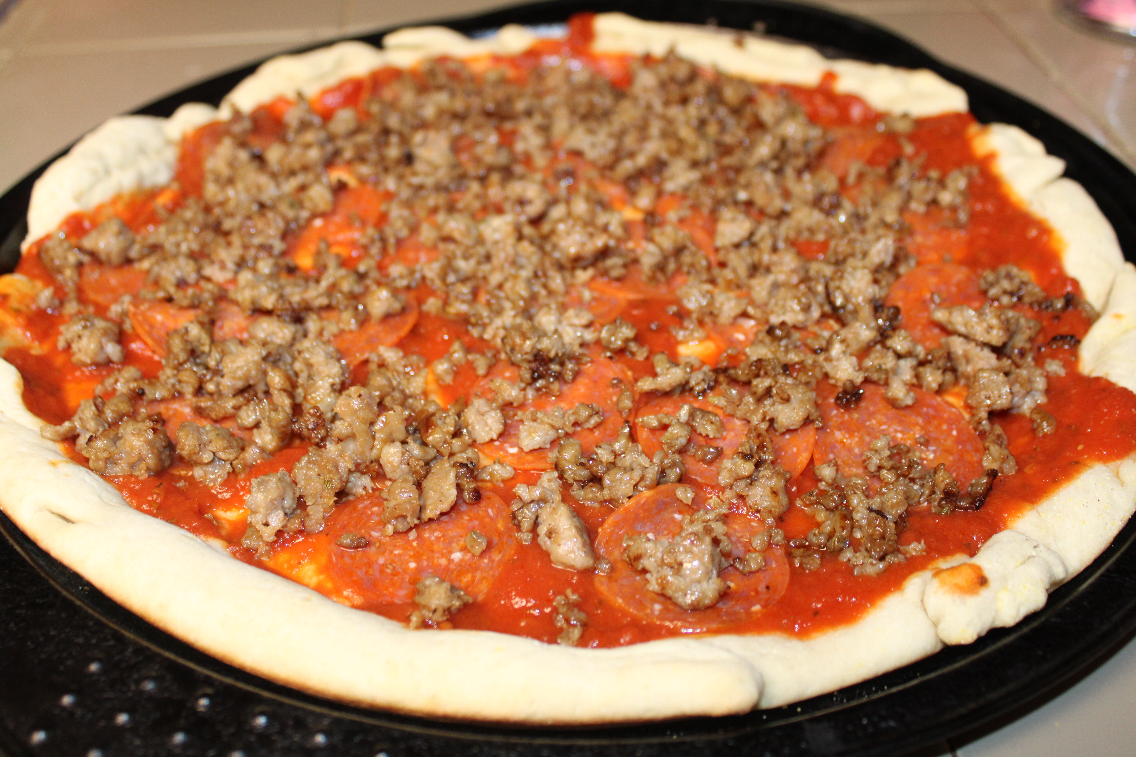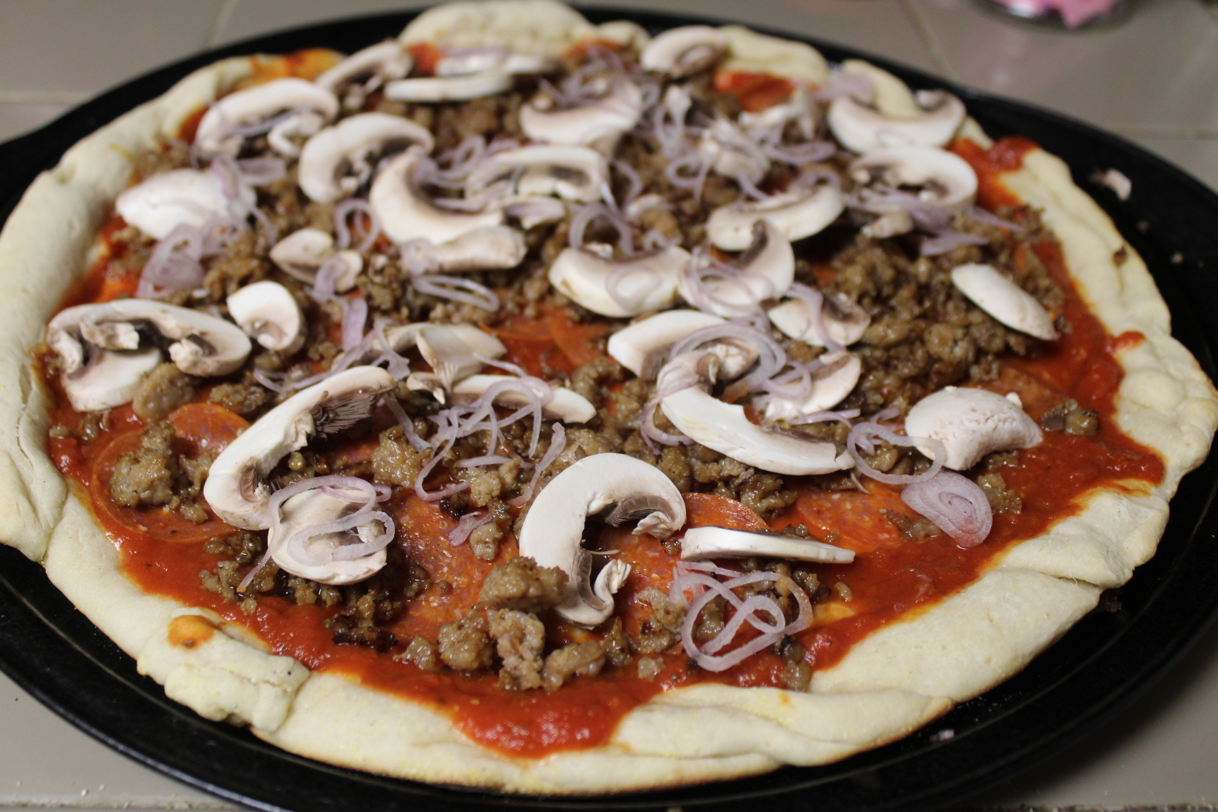 Hubby’s absolute favorite pizza on the planet has to be Sausage and Mushroom. He might eat other pizzas simply because we are sharing, but if he were to order an individual pizza, you can bet it’s sausage and mushroom.