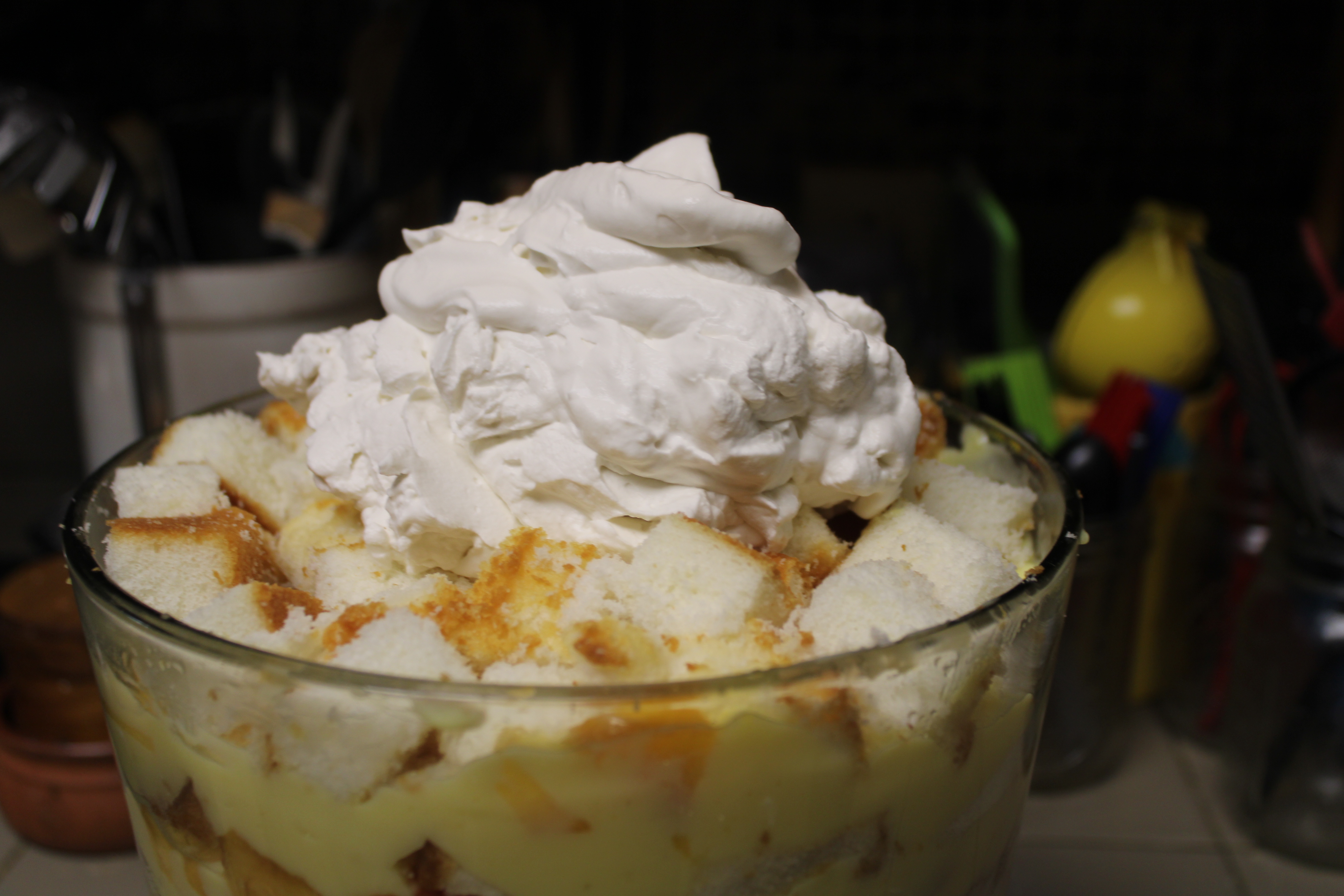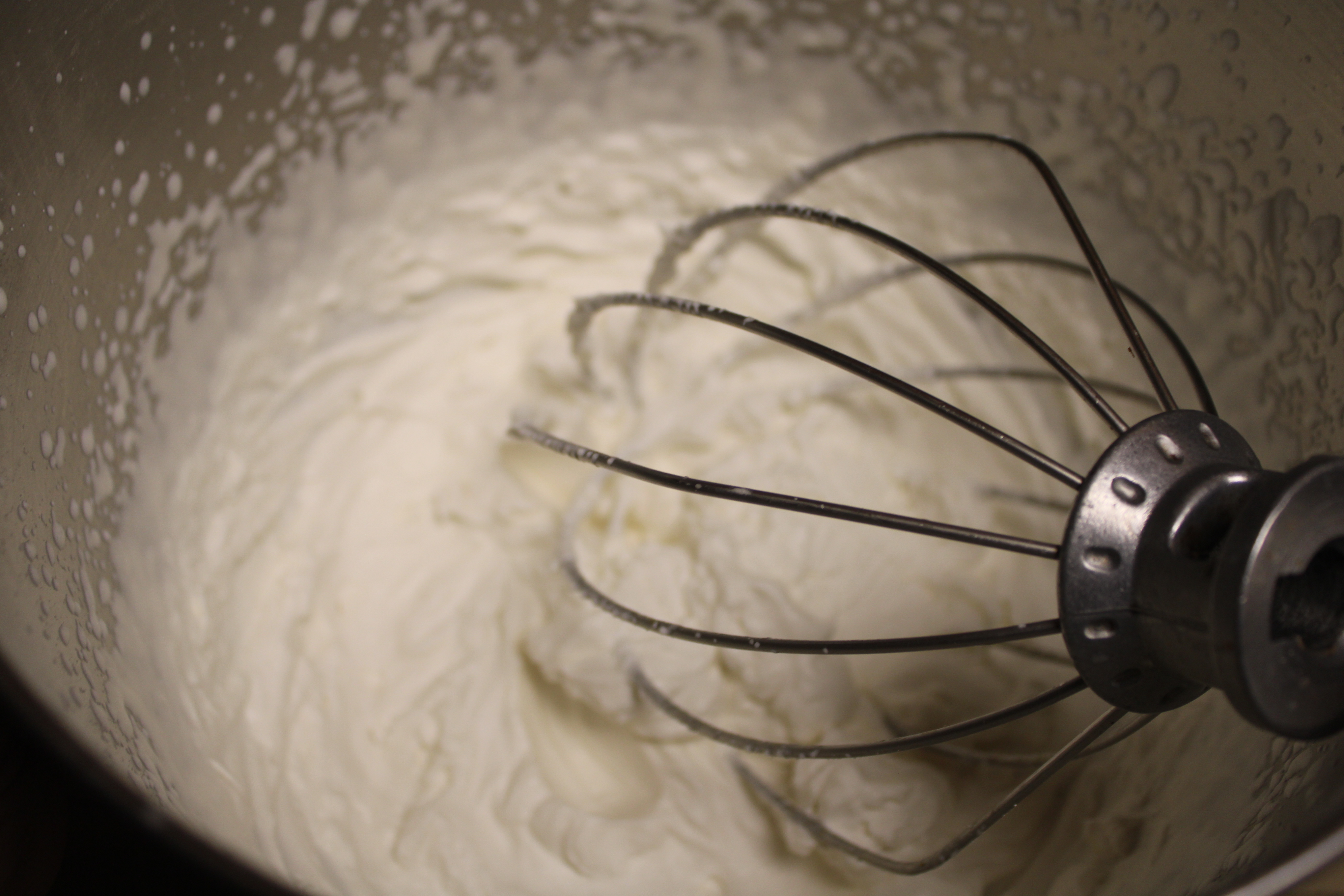 While the pudding sets, chill the bowl and whisk of a stand mixer in the freezer. Once well chilled whip heavy cream with vanilla and sugar into stiff peaks. Set aside.