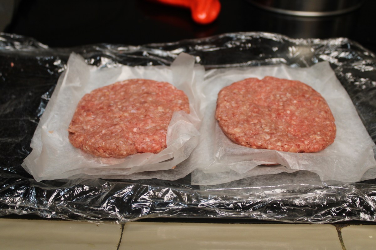 Divide ground beef into eight 2-ounce balls. Shape into hamburger patties. Place waxed paper between patties. Wrap in plastic wrap, chill well until ready to grill.